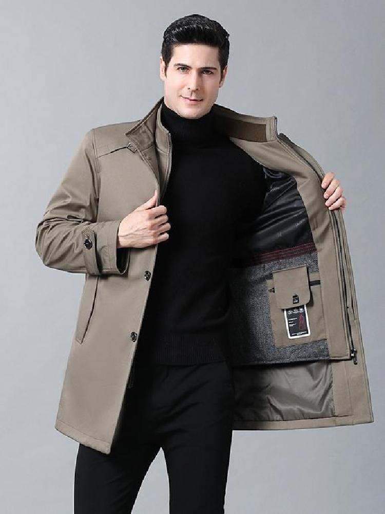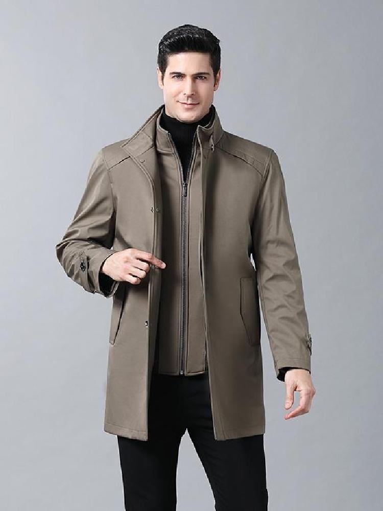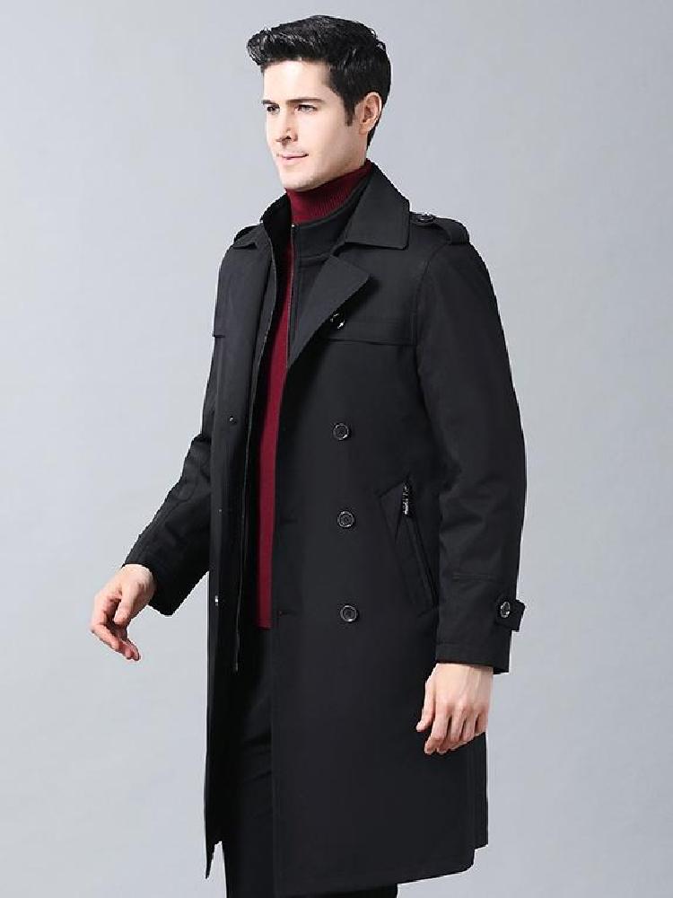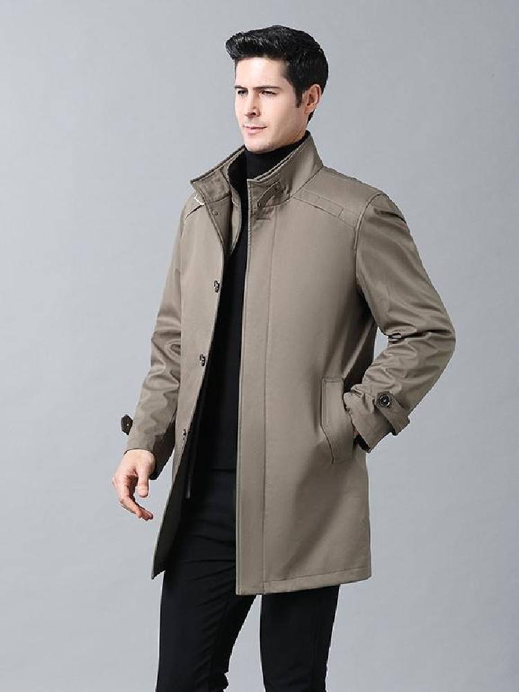 纯色风衣是经典代表,这款风衣延续韩版风格,别致的西装领设计,完美修饰颈部线条,尽显帅气一面,中长款长度,修饰好身材的关键,单排扣点缀,美观实用,经典的西装口袋盖装饰,让风衣不显单调。