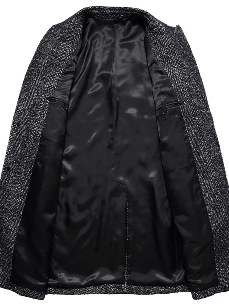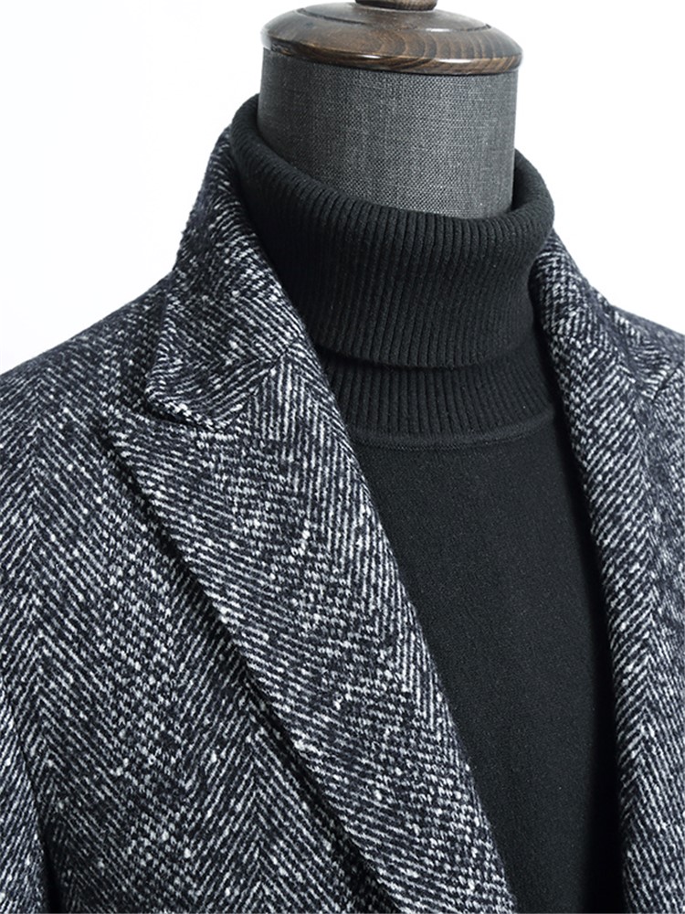 人字纹图案的毛呢大衣,选取的是混合型材质,其中大部分主要以羊毛为主,穿着亲肤御寒,触感还兼具一定的爽滑性,不容易出现刺痛感。而混合的聚酯纤维,并不是滥竽充数,可保持大衣良好的保型性,使其穿着不易出现变形和起褶状况。