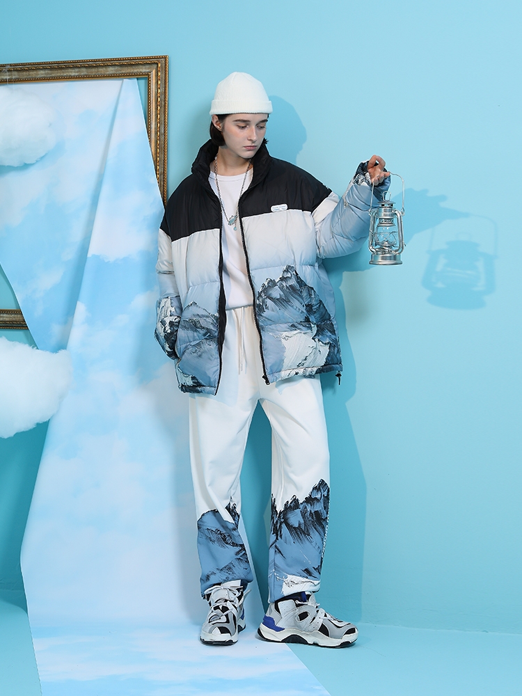 极具异域风情的一款羽绒服,特色印花灵感来源于德克萨斯州原住民。利落的短款与长款相比就干练的多,行动自如。无帽的立领设计,看起来不繁杂,上部一点纯色的拼接,增添设计感。