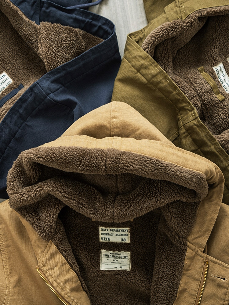 羊羔绒内衬,不易掉毛,触感柔和保暖,门襟有拉链和纽扣双重规格纯铜拉琏,肋形螺纹袖口及下摆抽绳,国产包芯线缝纫,腋下透气孔设计,整体特别厚实。