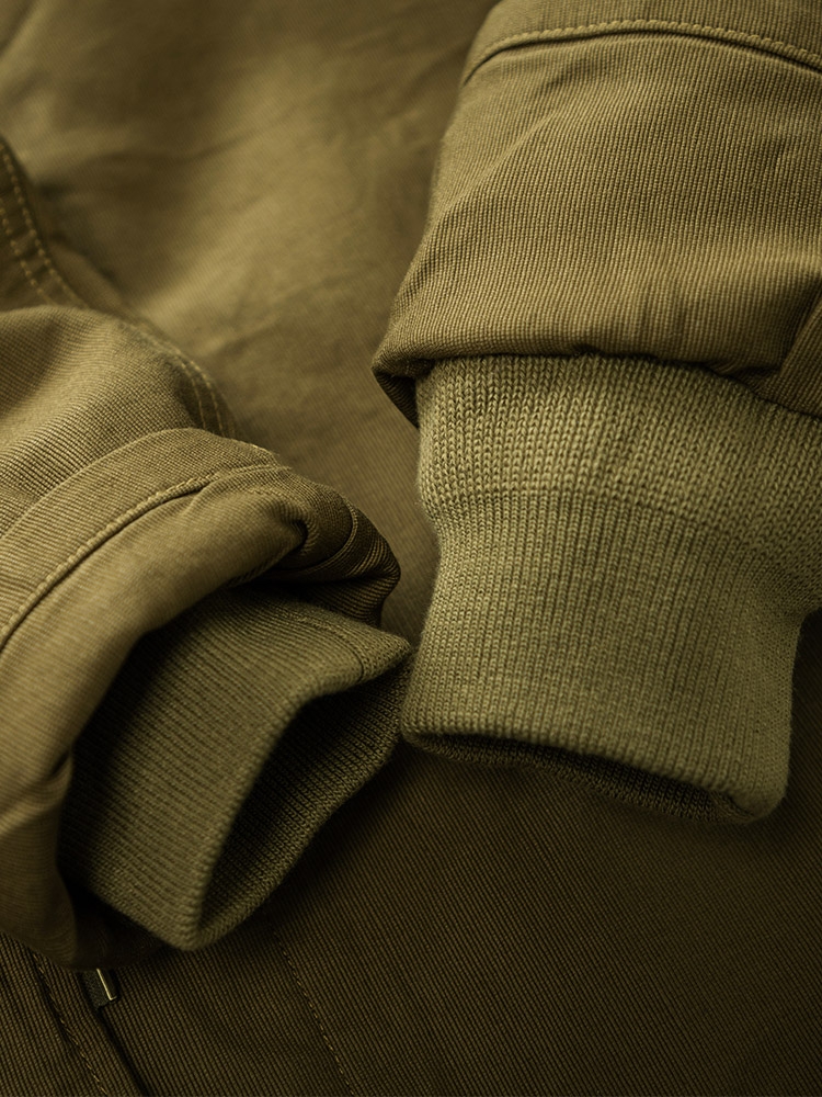 一代元年无字款改良的连帽设计非常实用,表层采用加厚JUNGLE CROSS定织罗缎棉布,及袖口罗文采用了肋形设计。