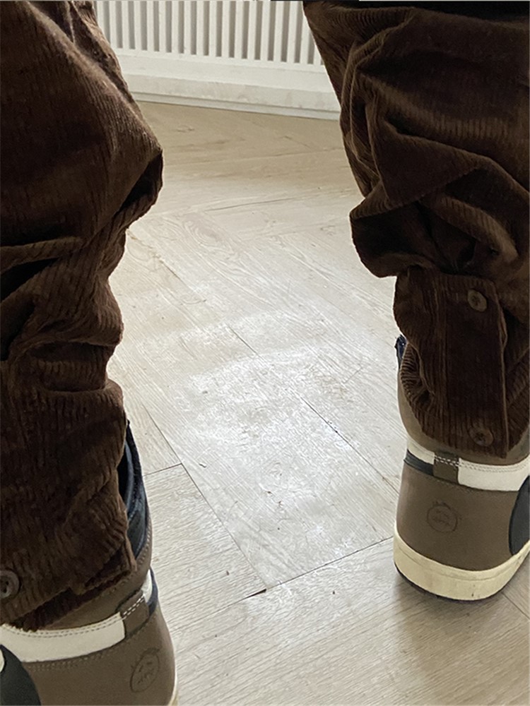 灯芯绒面料的裤身,穿着舒适透气,宽松的版型,穿着舒适自在,宽松的版型,不挑身材,穿着舒适自在,纯色的设计,简约大方,休闲百搭。