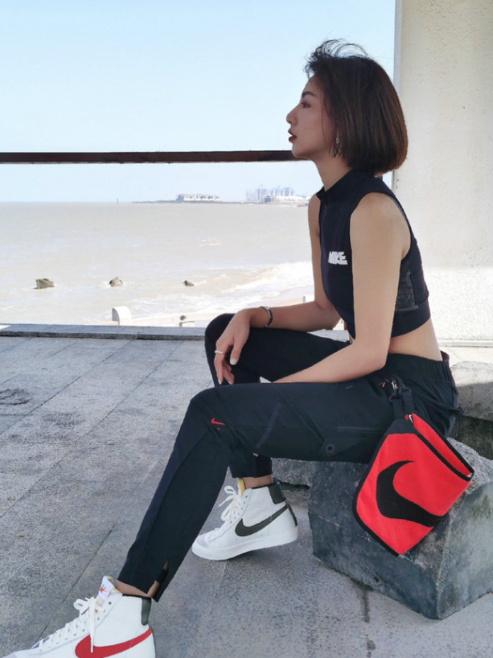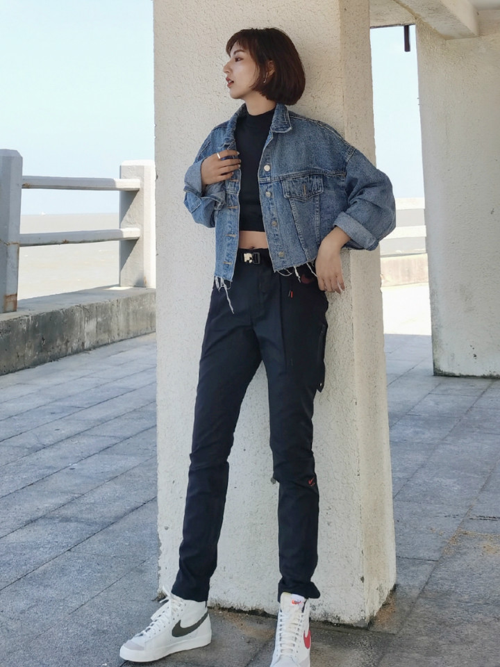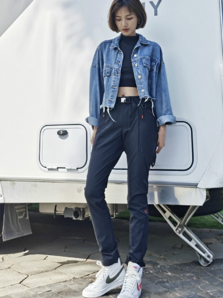 高腰的设计,拉长腿部线条,显瘦效果很好,高腰的版型,很显高挑,修身的剪裁,修饰腿部曲线,上身很有范。