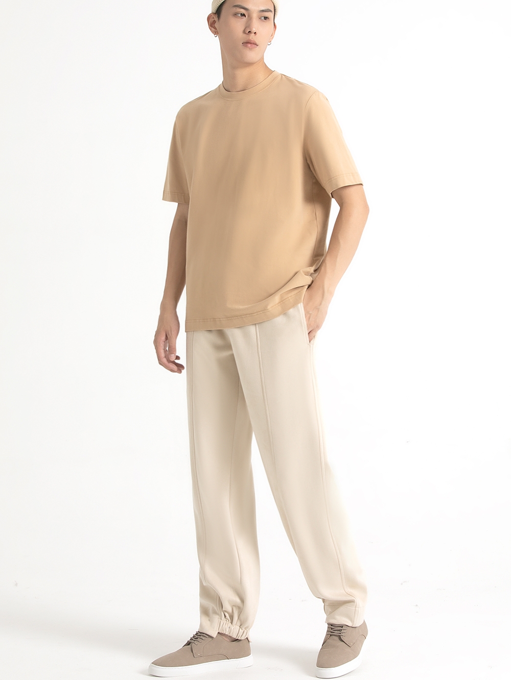 利用结构裁剪,改变脚口造型,半松紧的装饰效果,为其增添流行元素,凸显个性时尚。