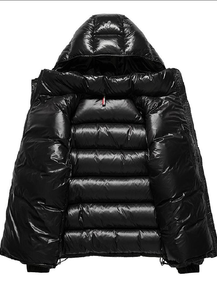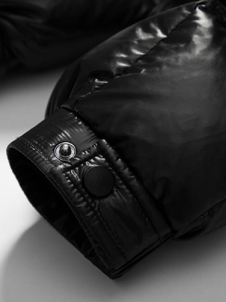 与狼共舞修身亮面连帽羽绒服,大气简约修身版型,可拆卸帽,造型自由转换。亮面面料,散发质感时尚魅力气质。