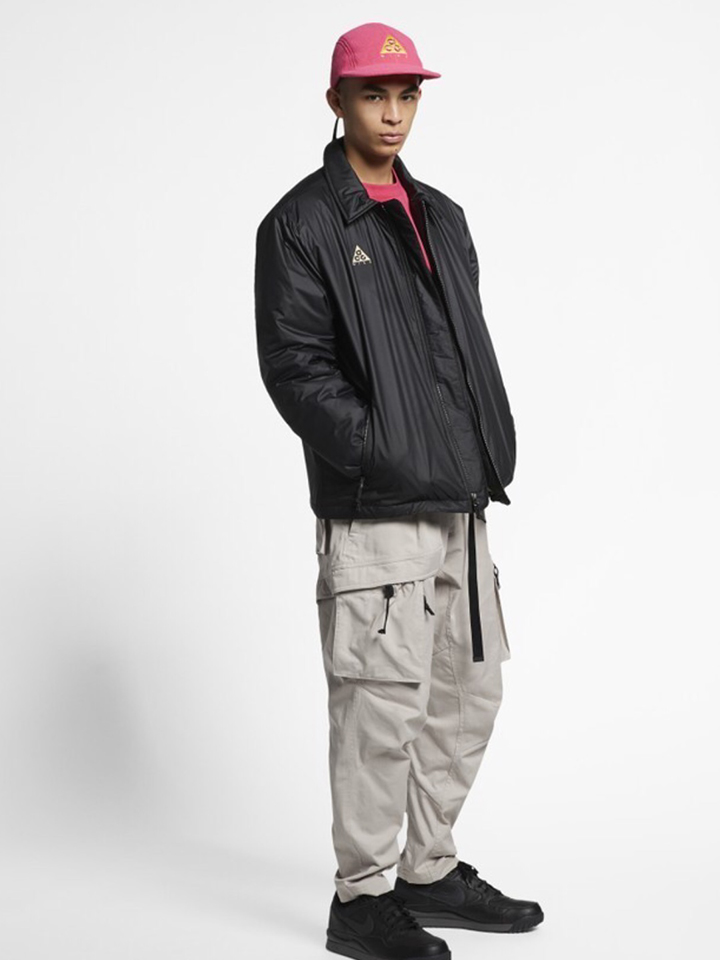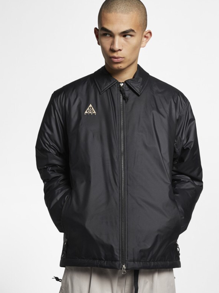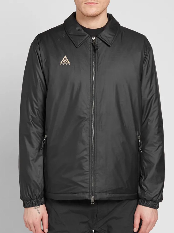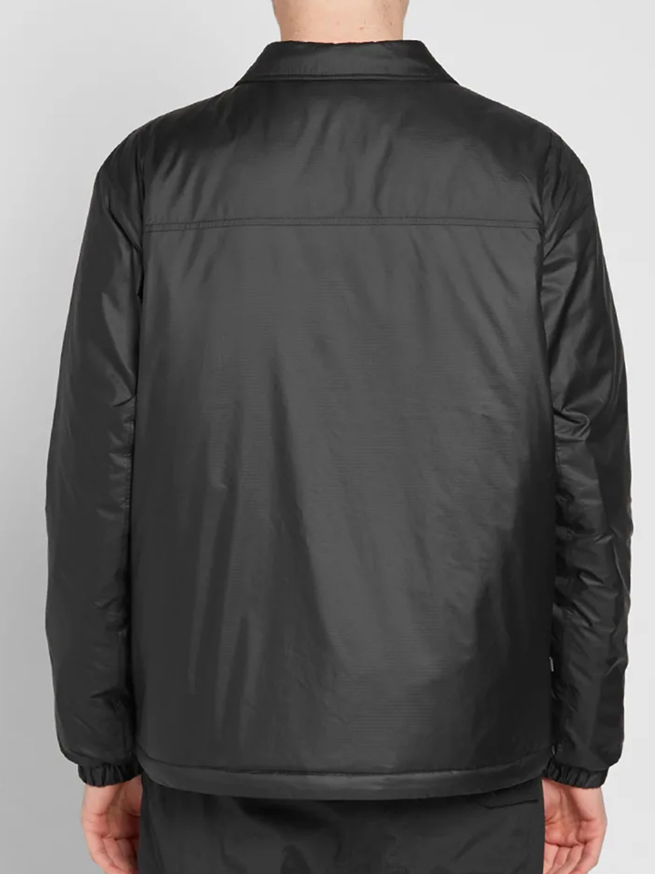 黑色的防水外套采用内里加棉设计,胸前增添品牌LOGO。