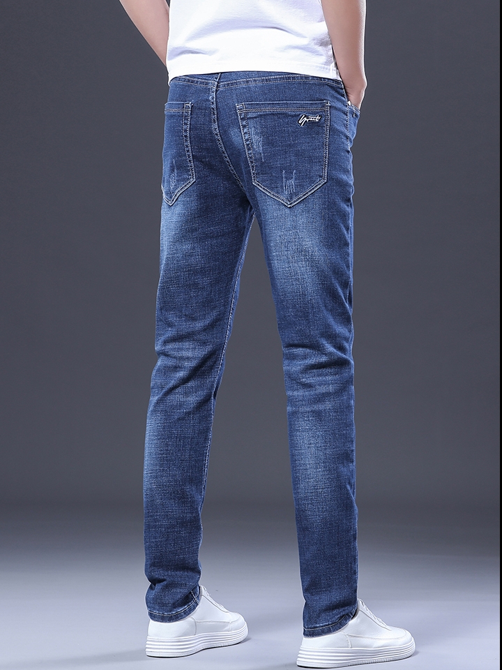 一款简约欧美风牛仔裤,选用含棉量高的优质面料制作,穿着舒适有质感,衣身采用经典怀旧的牛仔蓝色调