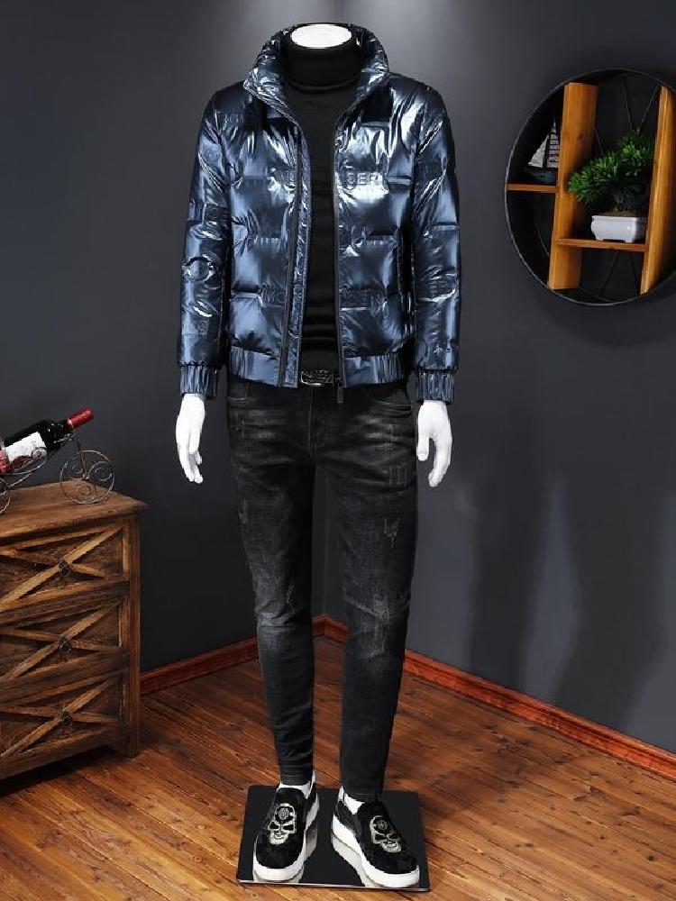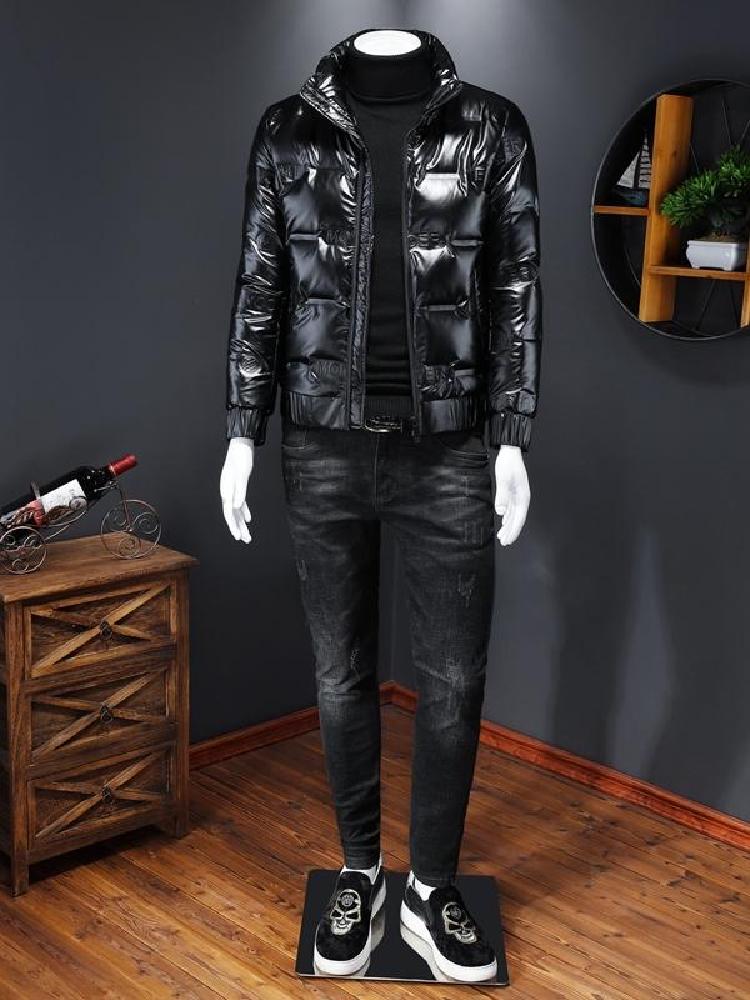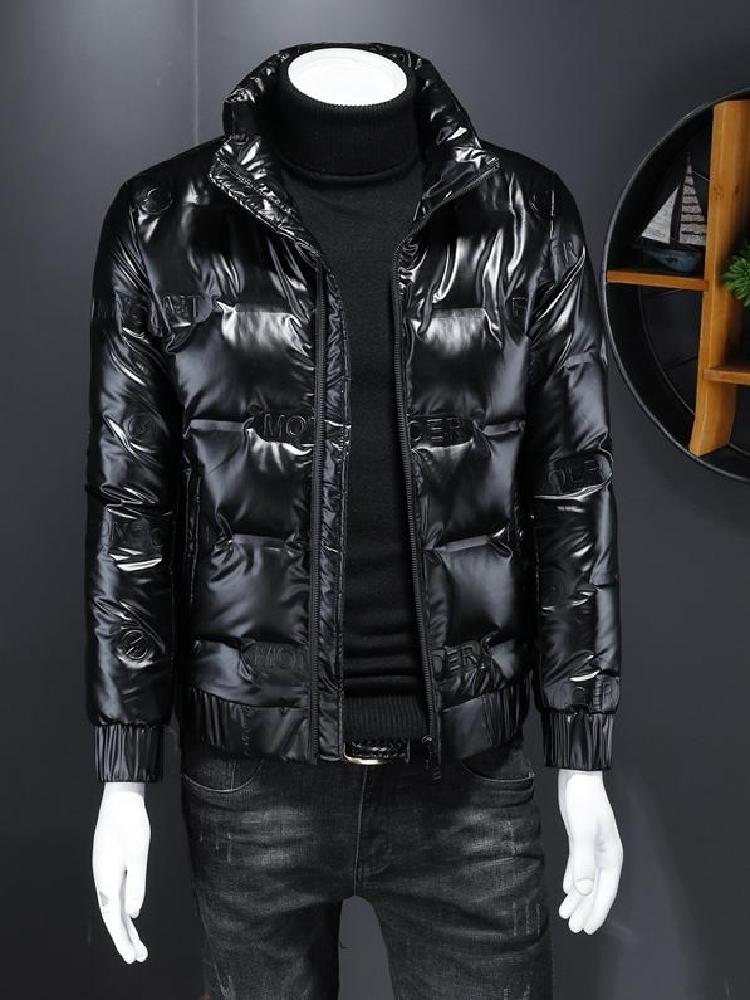 短款的羽绒服在冬日更能展现男士精神轮廓,亮面的质地在街头随时都是焦点所在,连帽的设计也尽显运动范十足。