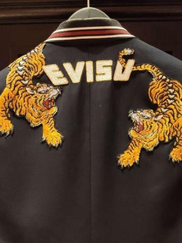 来自日本的高端牛仔潮牌Evisu独家设计的这款牛仔裤,设计的重点在于后袋的小M印花、老虎刺绣及绒字,亮眼吸睛;选用高品质牛仔面料辅以精致的做工,质