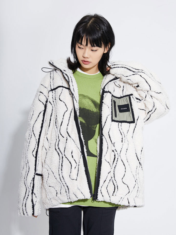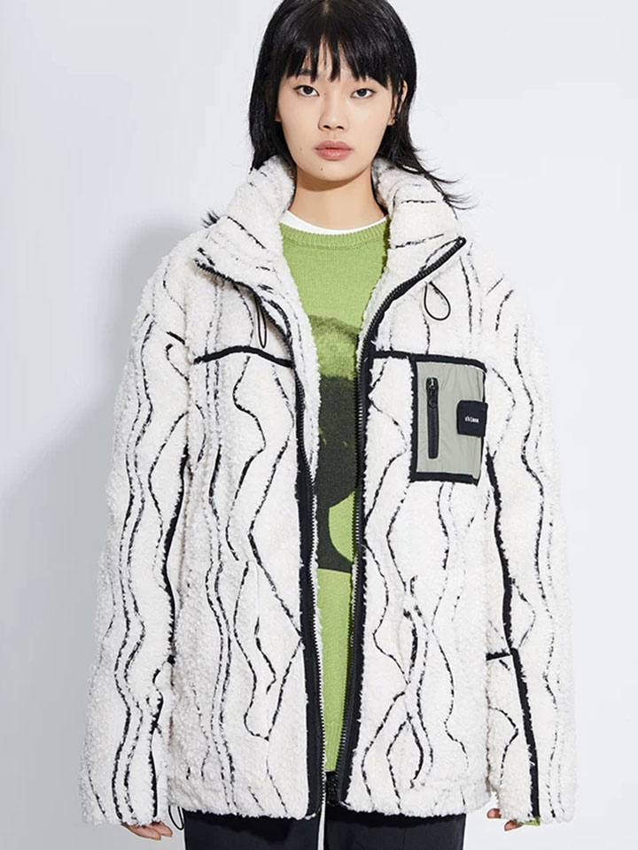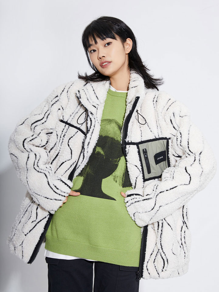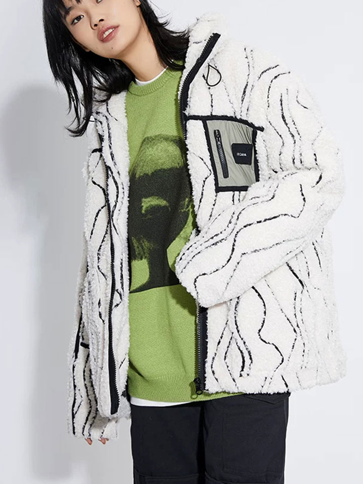 羊羔绒面料是这款外套最特别的设计啦。自带软萌感的羊羔绒面料,让这款外套上身就很有年轻活力。