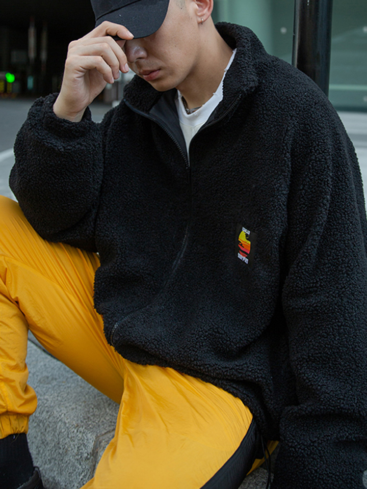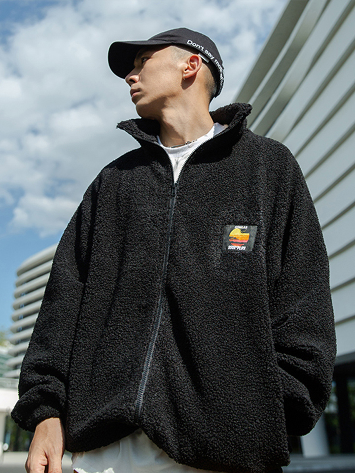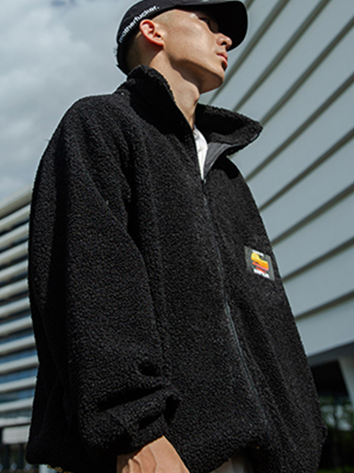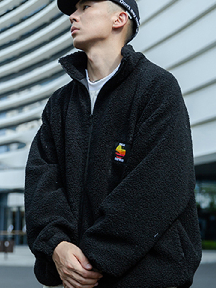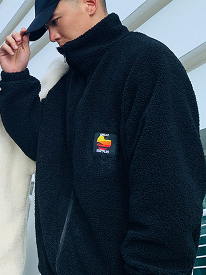带点机车风格和西部风格的夹克外套。仿麂皮外层,仿羊羔绒内层,斜拉链门襟,前有两个假贴袋,拥有这款夹克你就是冬天的赢家。