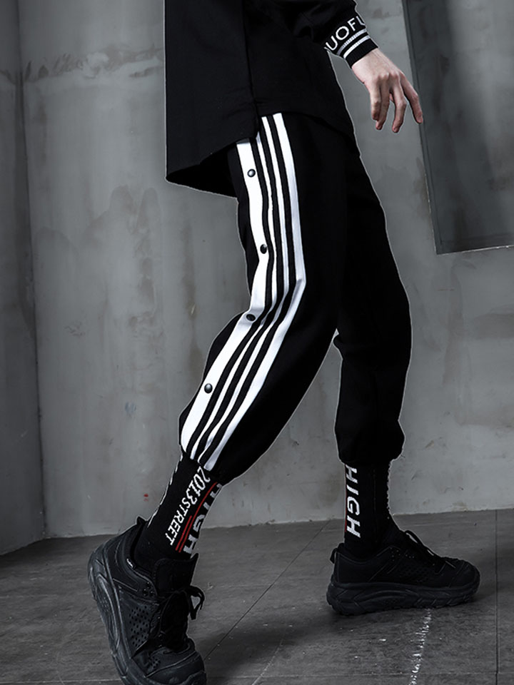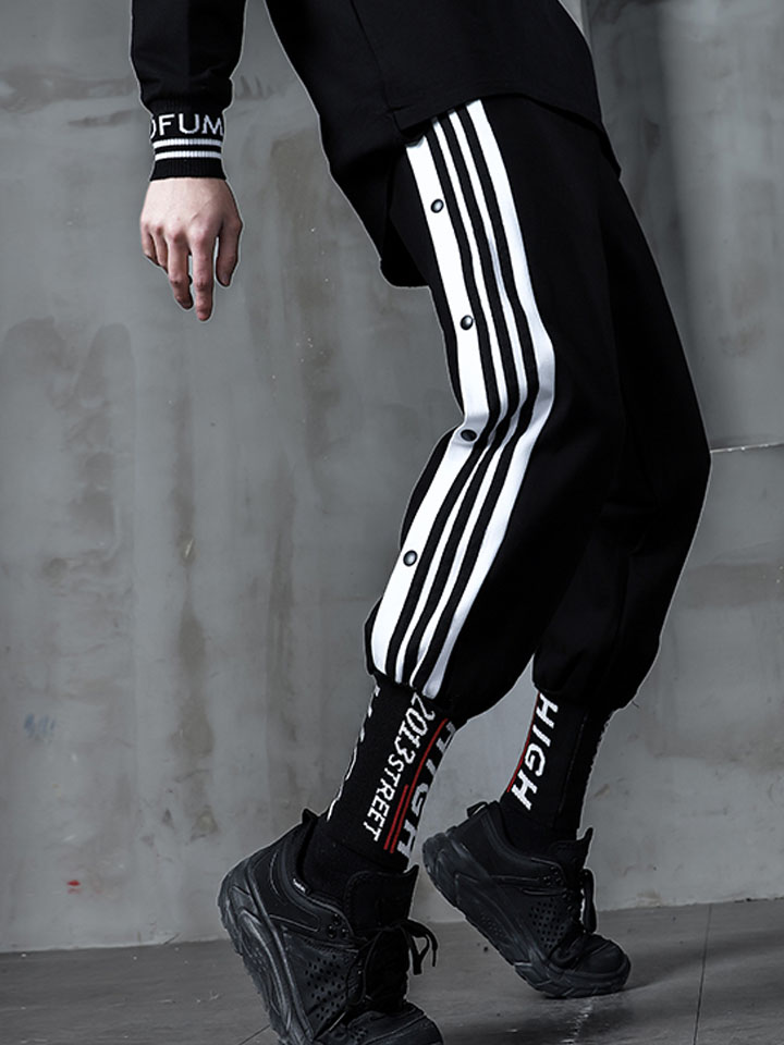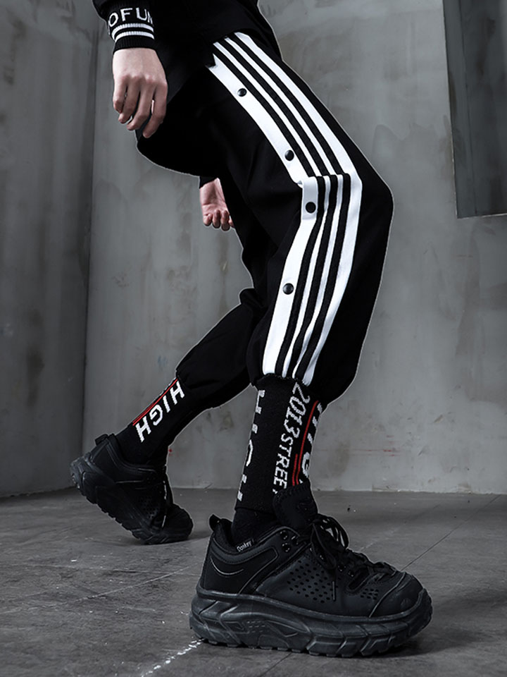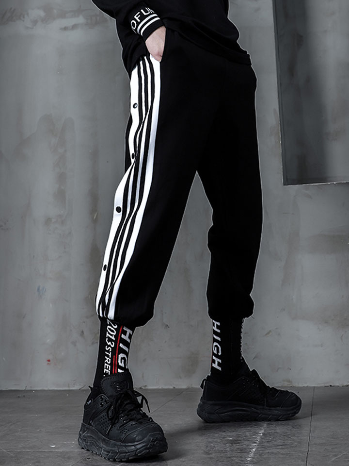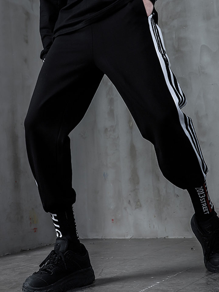 嗨街这款裤子在设计上选择了精致的黑色色泽,打造出炫酷的帅气感。