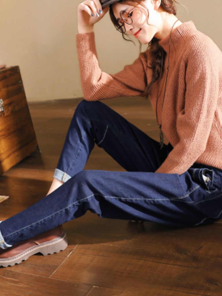 简约式牛仔裤,带着女性浓郁的文艺气息,高腰收腰的设计凸显了腰部柔美,插口袋设计显得简洁大方,加厚型的面料质感柔软,穿着极为亲肤,车缝线勾勒显得立体有型,穿着很有挺括感。