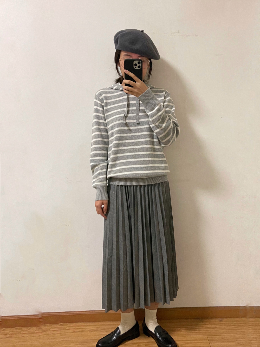 50%羊毛,50%腈纶,保暖柔和的同时又不会太脆弱。有2个色,灰白条纹和黑红条纹,配色很经典。