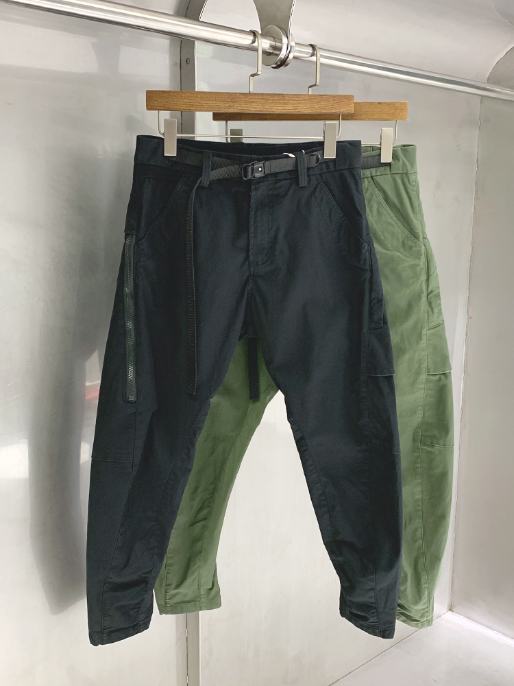 修身小脚版型的工装裤,修身的小脚版型,穿上身能起到修饰腿部线条的效果,基本款与复古黑大气不过时,也有卡其色。