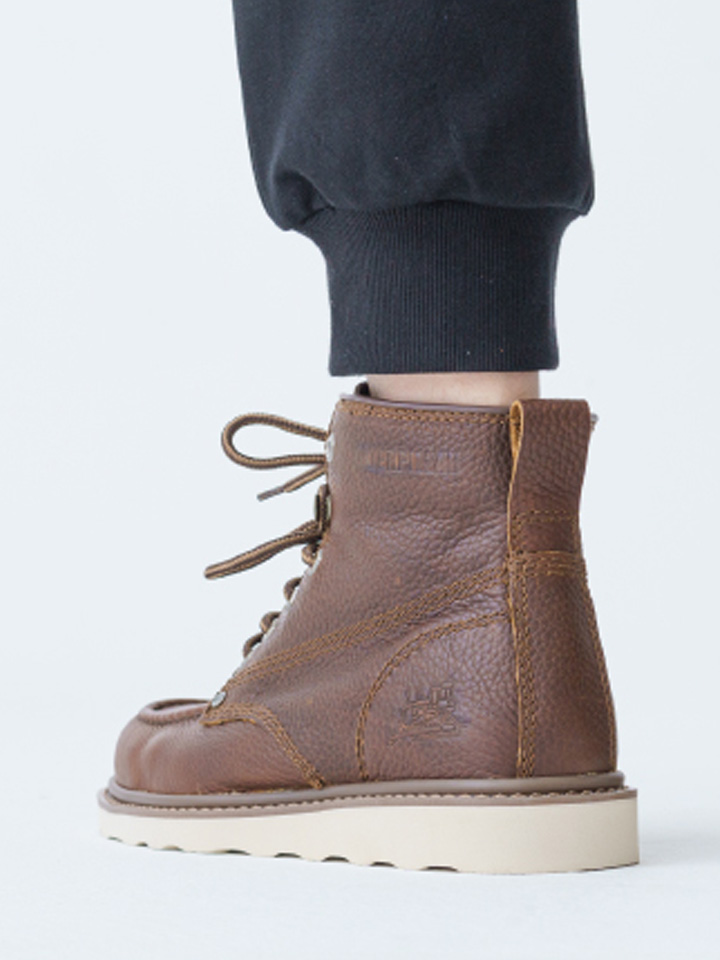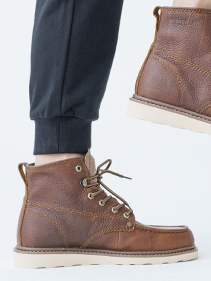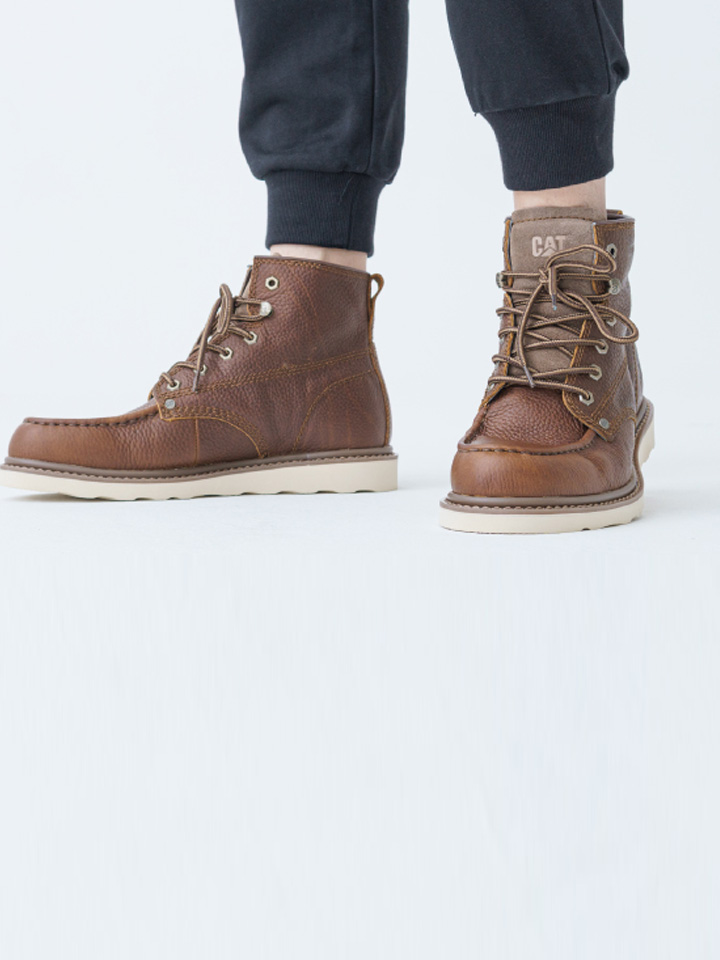 由CAT卡特出品,此款男士皮靴选用头层牛皮制作鞋面,经过特殊工艺形成油皮面,光泽细腻容易清洁。编织打蜡的携带紧密结实耐用,鞋底采用优质橡胶制作,穿着舒适耐磨,鞋面与鞋底采用固特异水晶胶粘合,牢固耐穿。