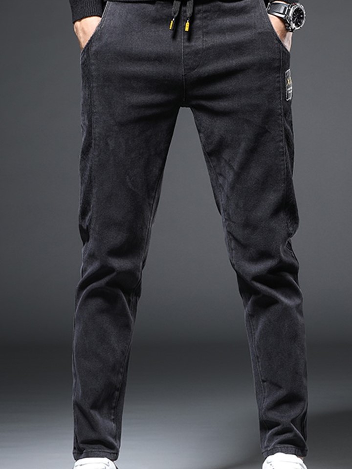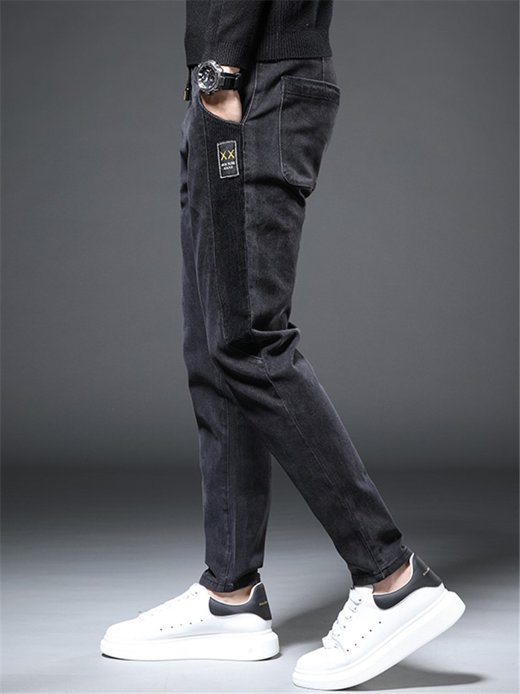 这款看似简约却不简单的男士牛仔裤,黑色色调,十分的深沉内敛,又带有些许复古的韵味。搭配特殊的设计,更是个性十足,彰显出不羁的街头气息。而且小脚裤的设计,修身又显瘦,轻松打造纤细的大长腿。