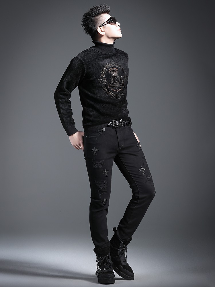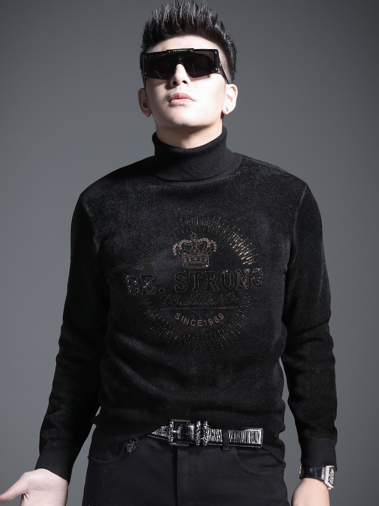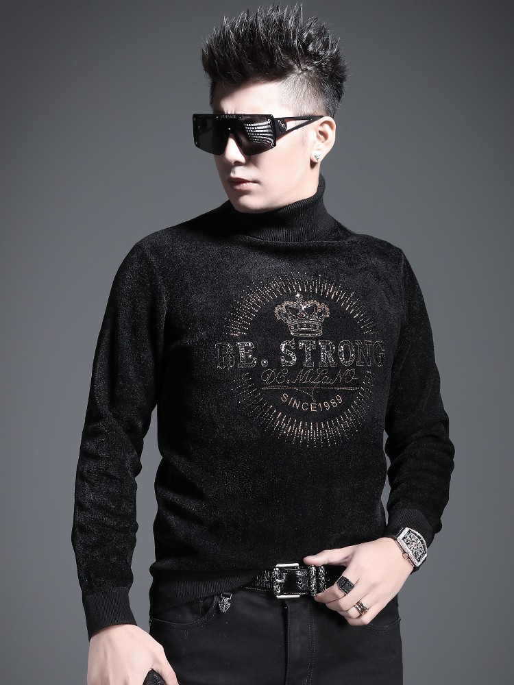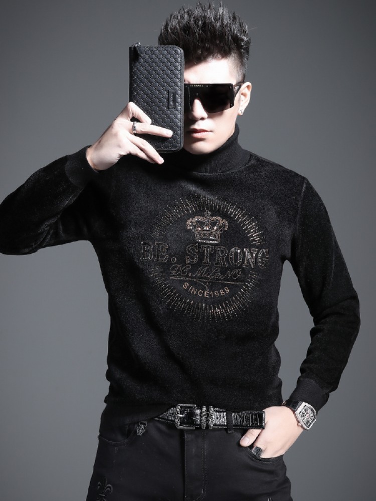 时尚的高领设计,穿着舒适有型,精致的烫钻工艺,彰显品质,修身的版型,更显男士的挺拔身姿,修身的版型,更显男士的挺拔身姿。