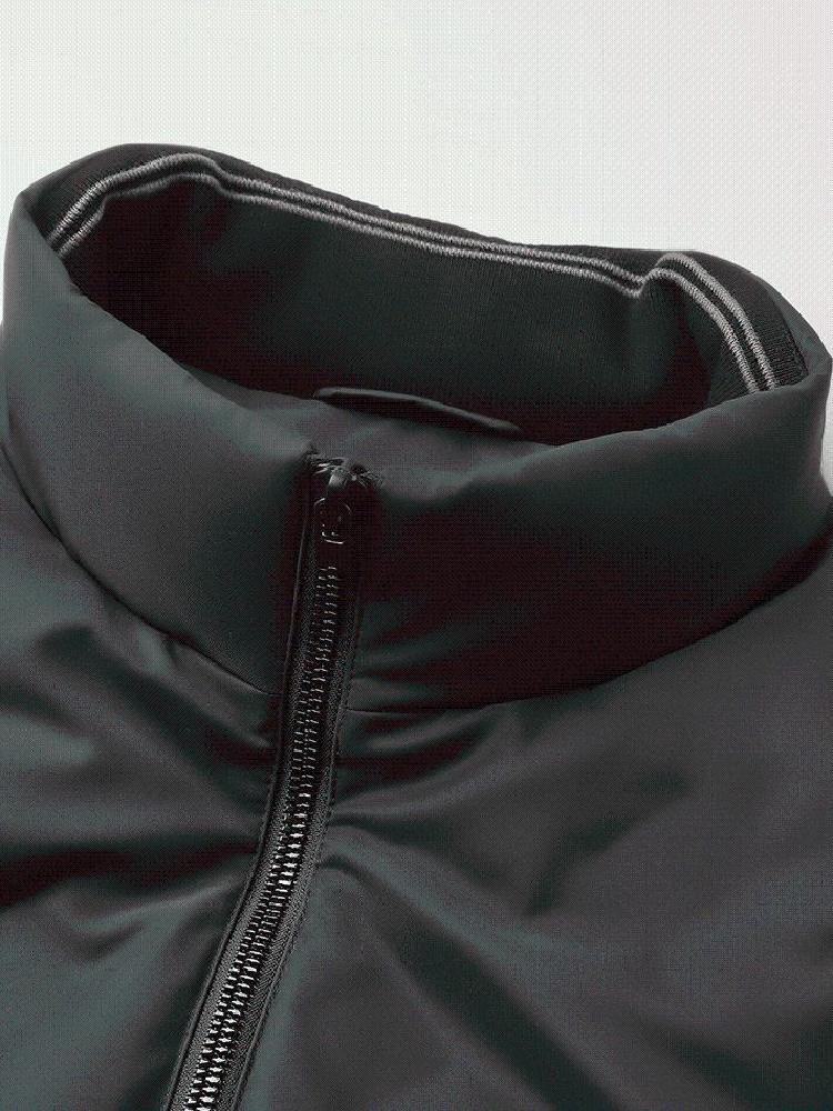 简单的修身基础款羽绒服,不同的面料拼接丰富了层次感。小立领防风保暖,修身短款简洁利落,随意内搭毛衣或是衬衫都能展现出潮范。