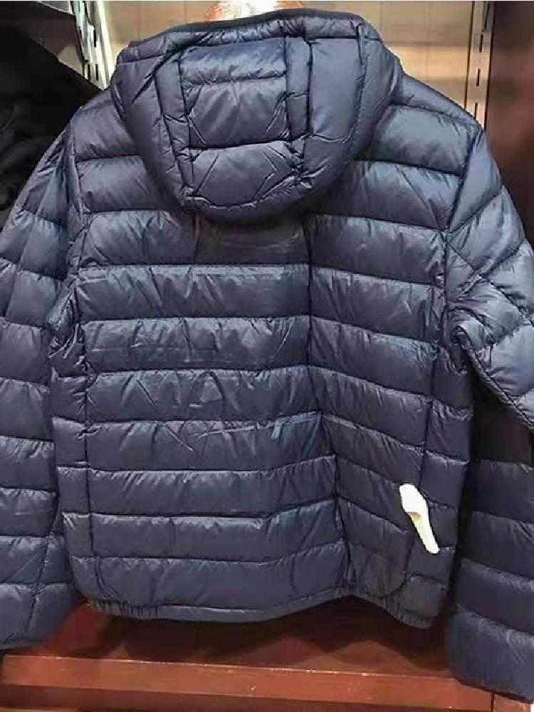 整个质地很蓬松轻盈,上身不会很重,但足够保暖,填充物有绗缝固定,保持羽绒的均匀填充,面料和里料选用涤纶料子,织物足够密实,加上羽绒含量很好,所以很少漏毛,可以放心穿着