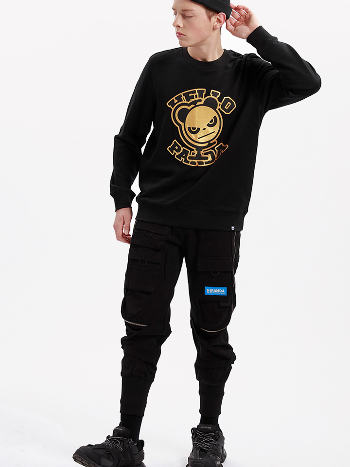 采用简约的黑色调和圆领设计,增添熊猫地球仪印花。