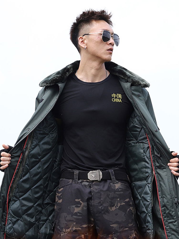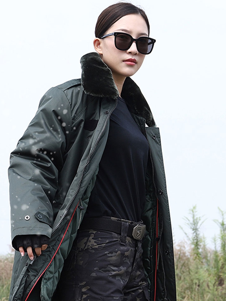 穿上这件军大衣,在冷的天也不怕,酷帅有型,不管男生穿还是女生穿都非常的保暖,立体的剪裁,平整不显臃肿,帅气不得了。