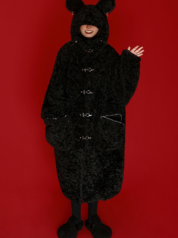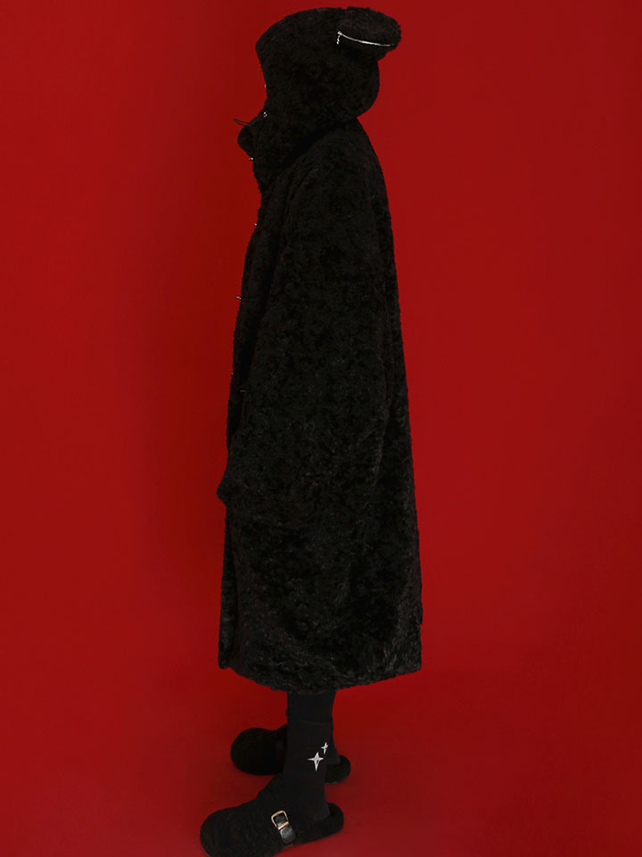 这款中长款棉服外套,选用了羊羔毛材质,柔软又保暖。