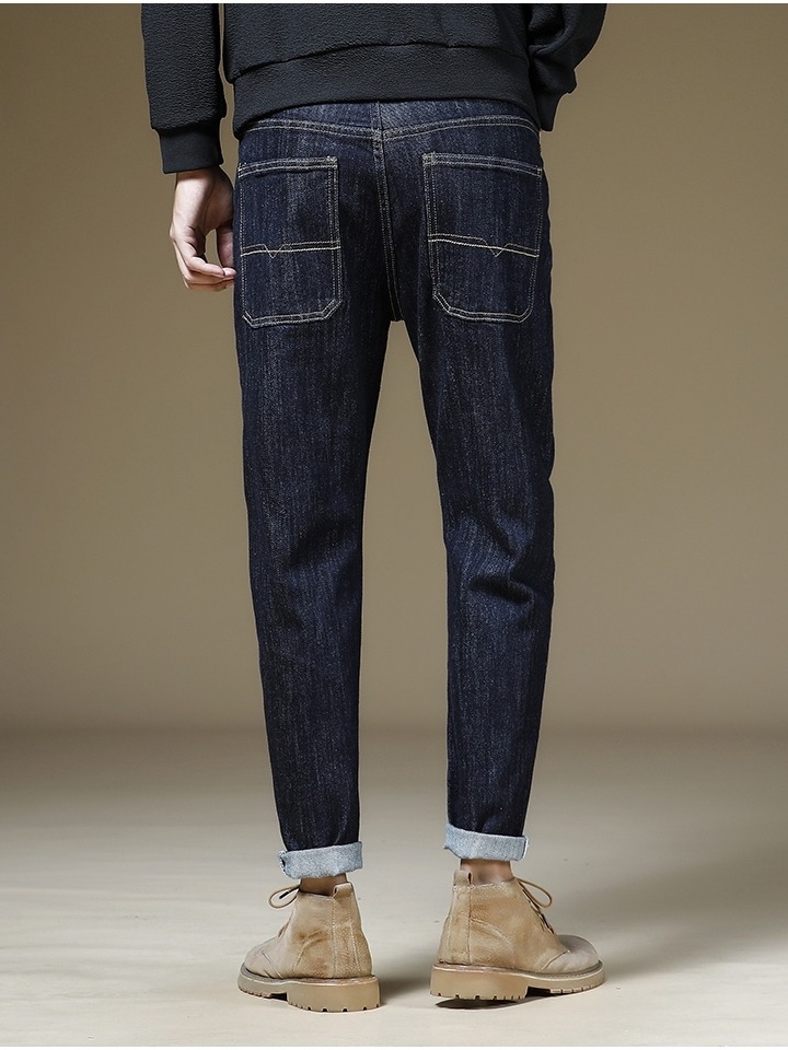 松紧腰牛仔裤 ,高腰弹力,全棉牛仔布料,穿着宽松、舒适,款式大方 修身显瘦,适合各个年龄段的男士穿着。