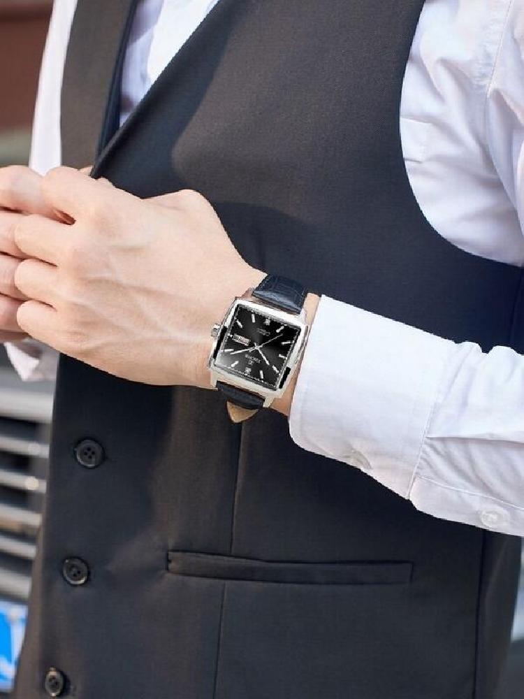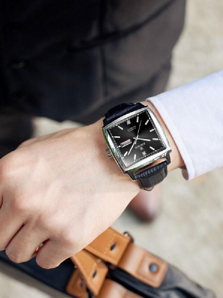 星皇全自动机械手表,经典商务精钢表带,让腕表与手腕无缝贴合,佩戴起来舒适,时刻为手腕减负。50m深度防水,安全可靠,选用星皇定制机械机芯,走时分秒不差,更加精准。