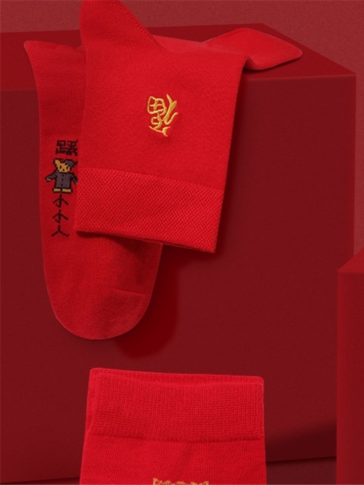 中国红棉袜,高贵的红色配上大气的金色,过年送亲人,回家送亲友,送长辈,倍有面子。踩小人,带来好运。