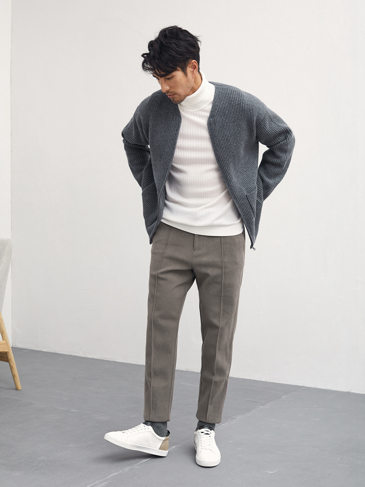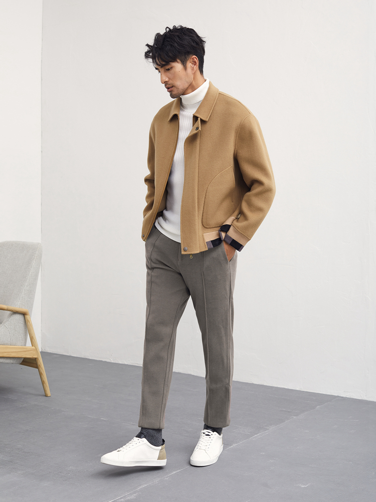 宽松直筒的裤型对任何身材都不怕,穿上身能够轻松掌握绅士风度。裤脚做了微收设计,有着萝卜裤的裤型趋势,上身非常显腿长。