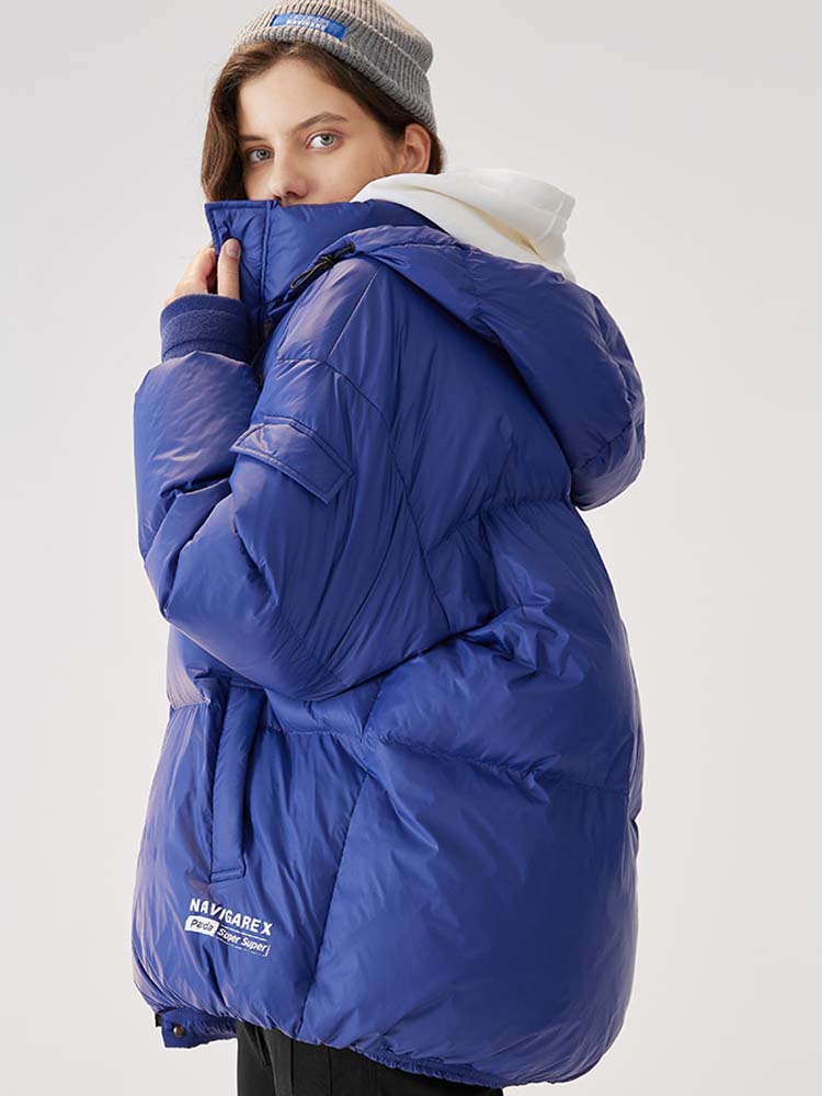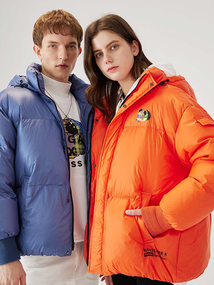 用优质的白鸭绒填充,蓬松感与保暖性都是一流的好,给你婴儿般触感。防风防钻绒设计,给你更贴心更温暖的呵护。宽松的欧美风格,显得时髦更加的洋气。个性的大连帽设计,以及短款,让温暖将你包围。