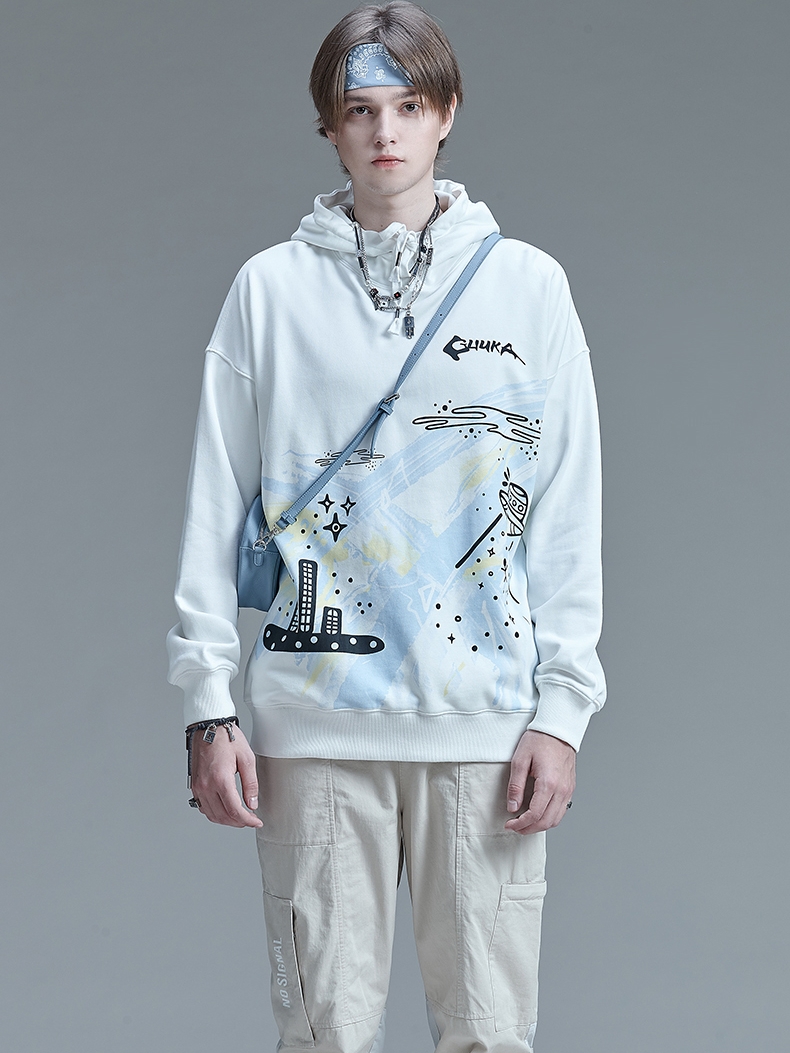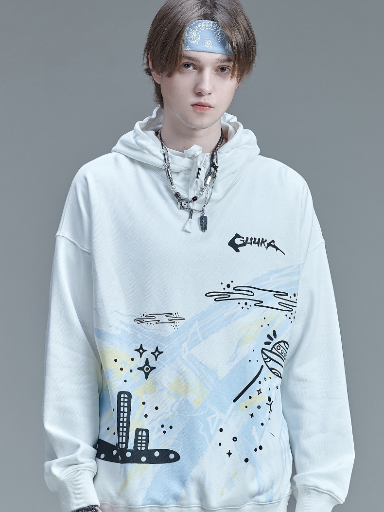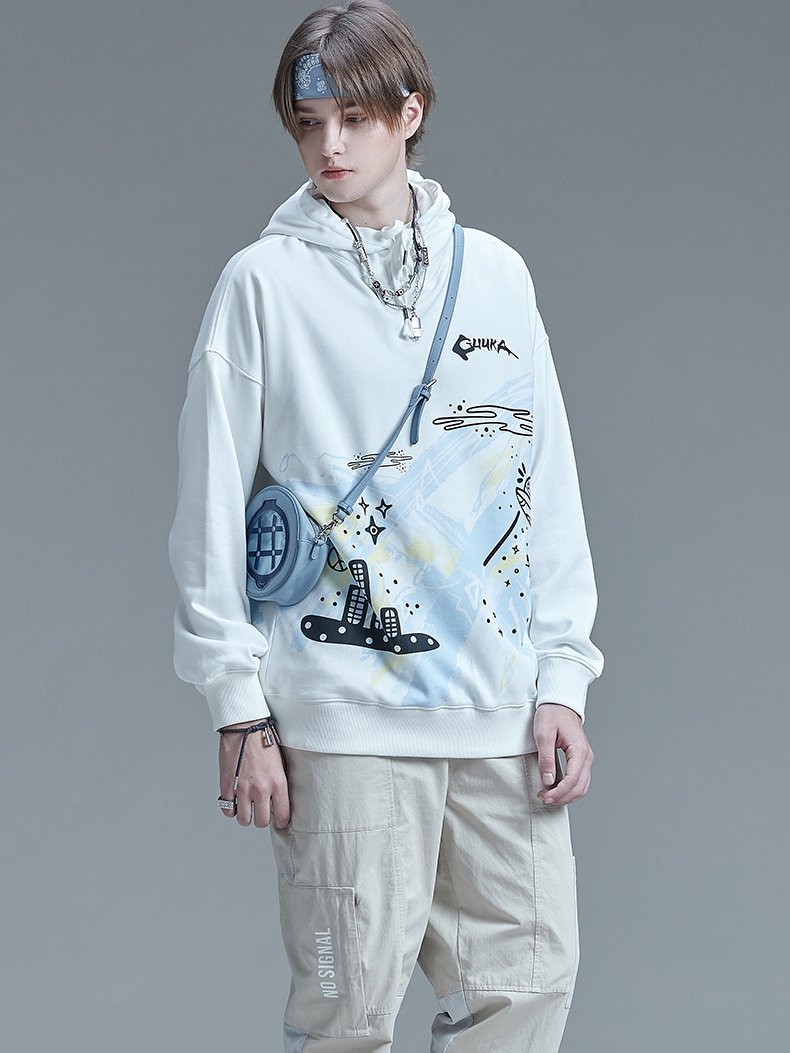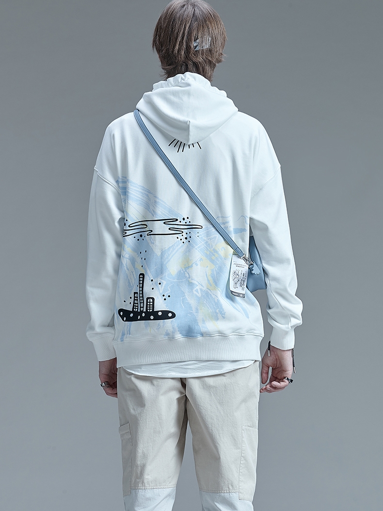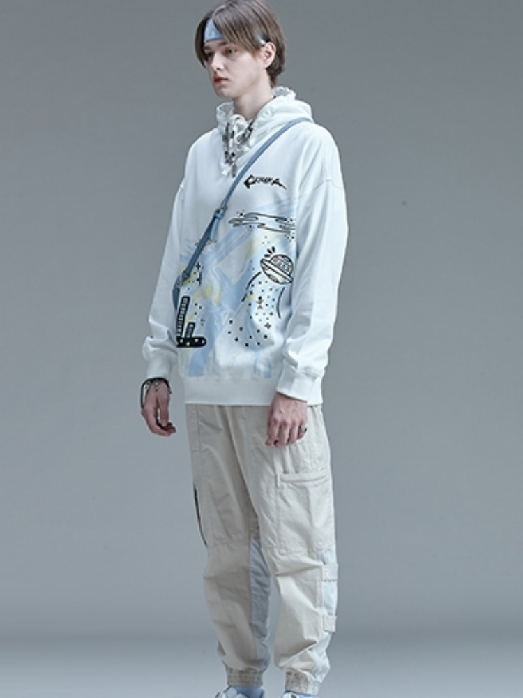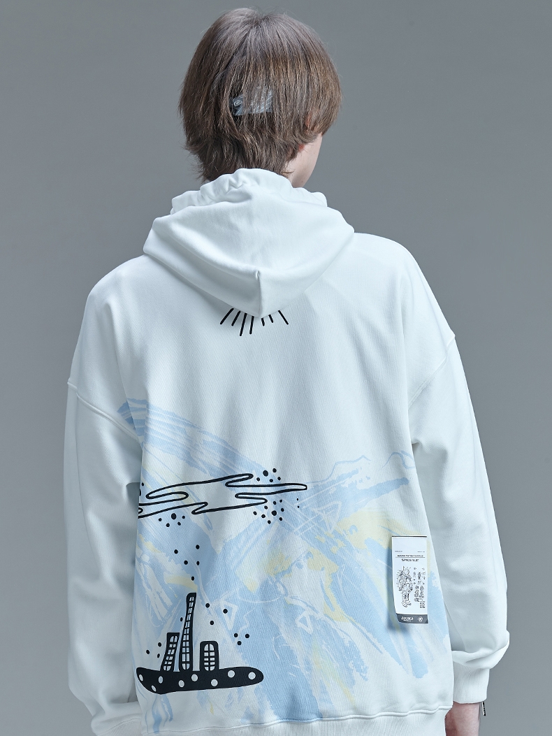 这款卫衣采用了优质的面料,手感柔软舒适,穿着亲肤透气。连帽的设计,更显青春活力,胸前的印花图案,更显青春活力,宽松的版型,穿着舒适自在。螺纹袖口和下摆,简约耐看,同时提升了防风保暖的效果。