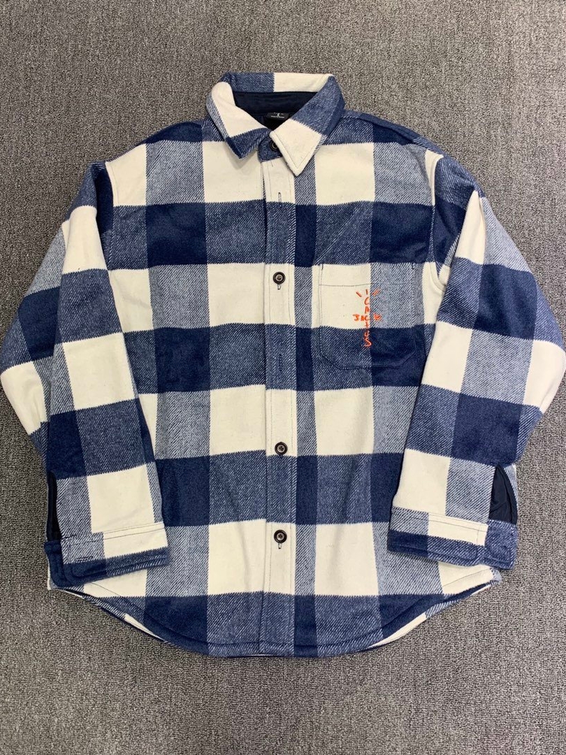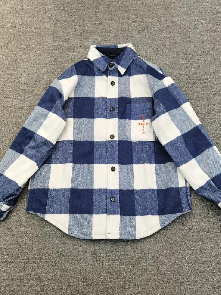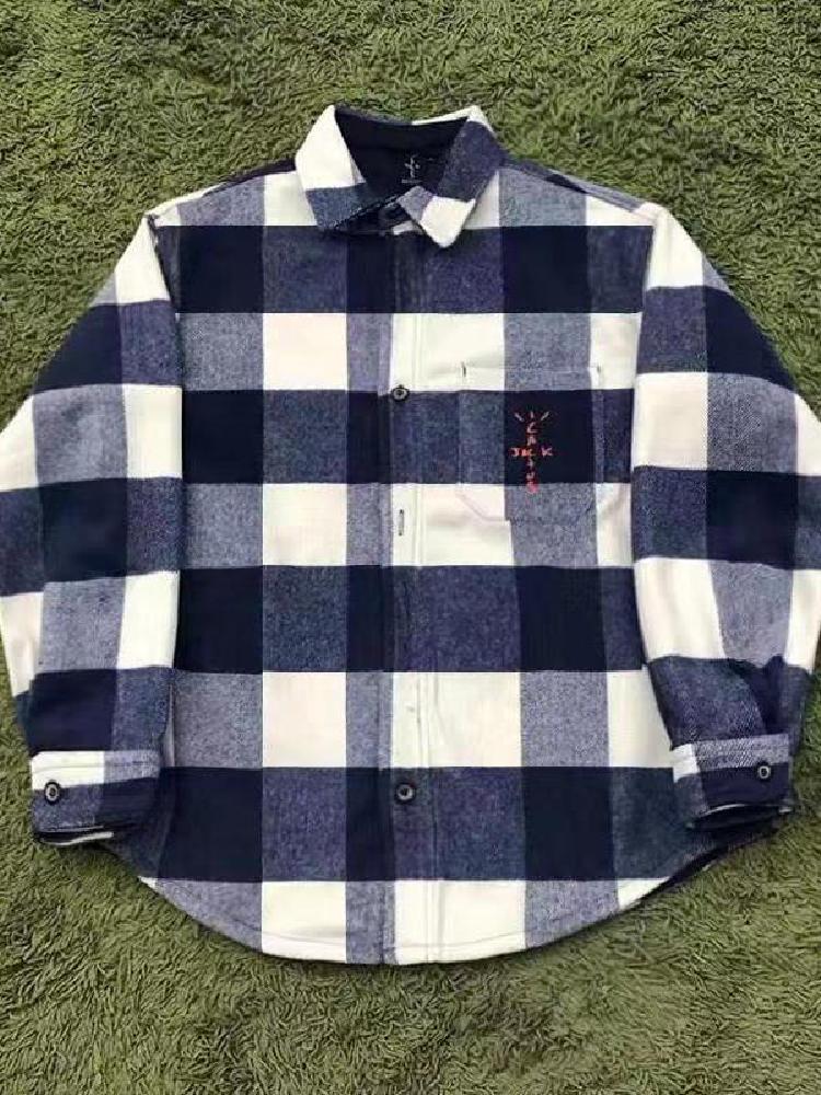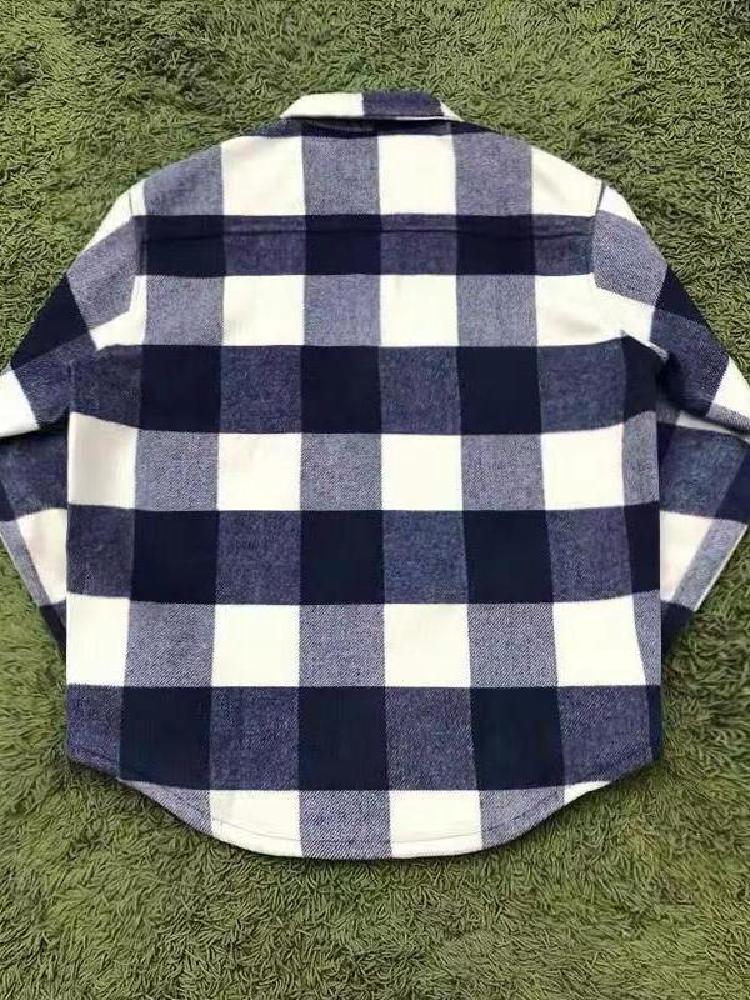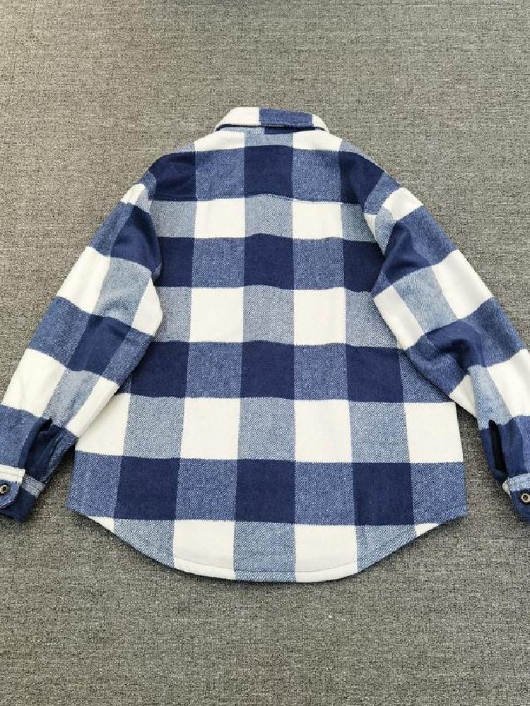 非常好看的蓝色格子衬衫,毛呢面料,区别于一般衬衫的质感,有厚度有品质,呈现一种复古的清新;袋盖处的两粒扣莫名带来了有趣的视觉感受,推荐入手。