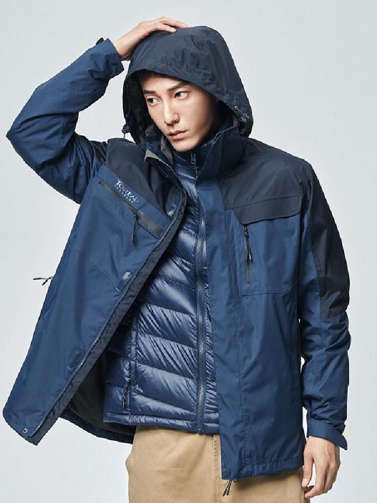 Toread/探路者户外男款三合一冲锋衣,采用全方位的锁温,帮你阻隔冷空气的侵袭,让你的身体时刻保持舒适感;抓绒的内件套,有按扣的设计使穿套更加舒适。