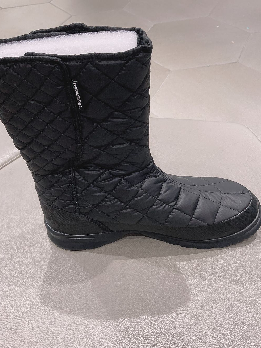 这款雪地靴采用了防撕裂防泼水的鞋面,鞋内填充了THERMOBALL合成纤维聚热球保暖材质,可抵御恶劣天气。