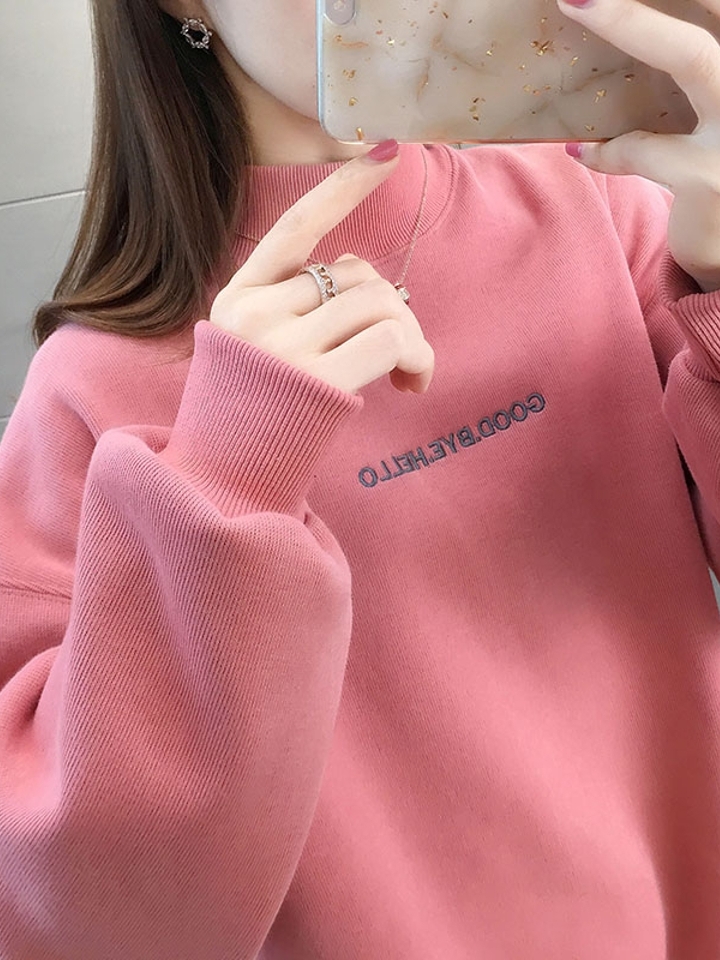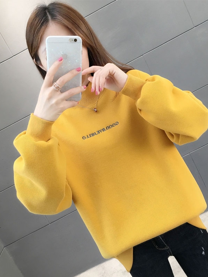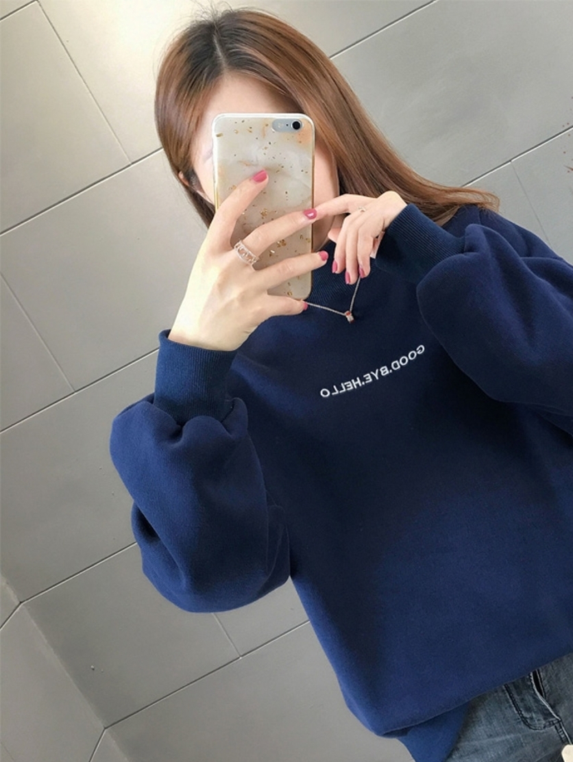 柔软的卫衣棉,内里抓绒,上身舒适。罗纹立领,很好的贴合颈部线条,休闲宽松的版型,不限制身形穿着。这款卫衣比较长,能够遮住屁屁上的小赘肉,让你看起来更加显瘦哦,胸口的英文贴布,让造型看起来非常韩范,搭配一条浅蓝色的牛仔裤和帆布鞋,非常时髦哦。