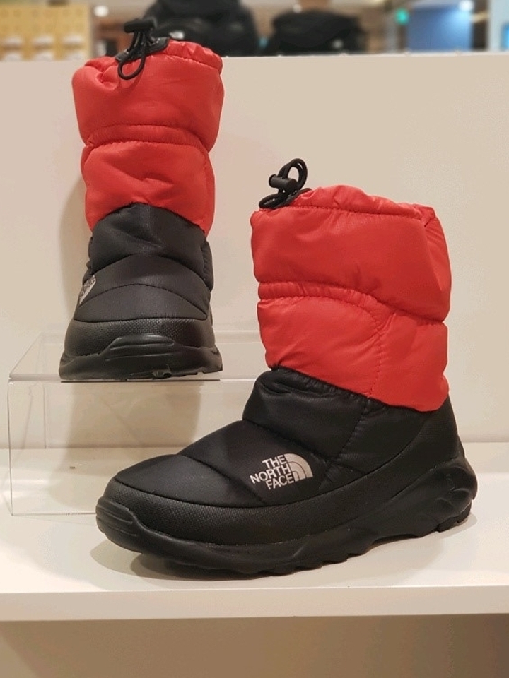 这款雪地靴非常厚实,拼色防水鞋面,鞋口有抽绳,非常有质感,内里羽绒填充,不仅让你的脚更温暖,而且穿上去更加舒适。
