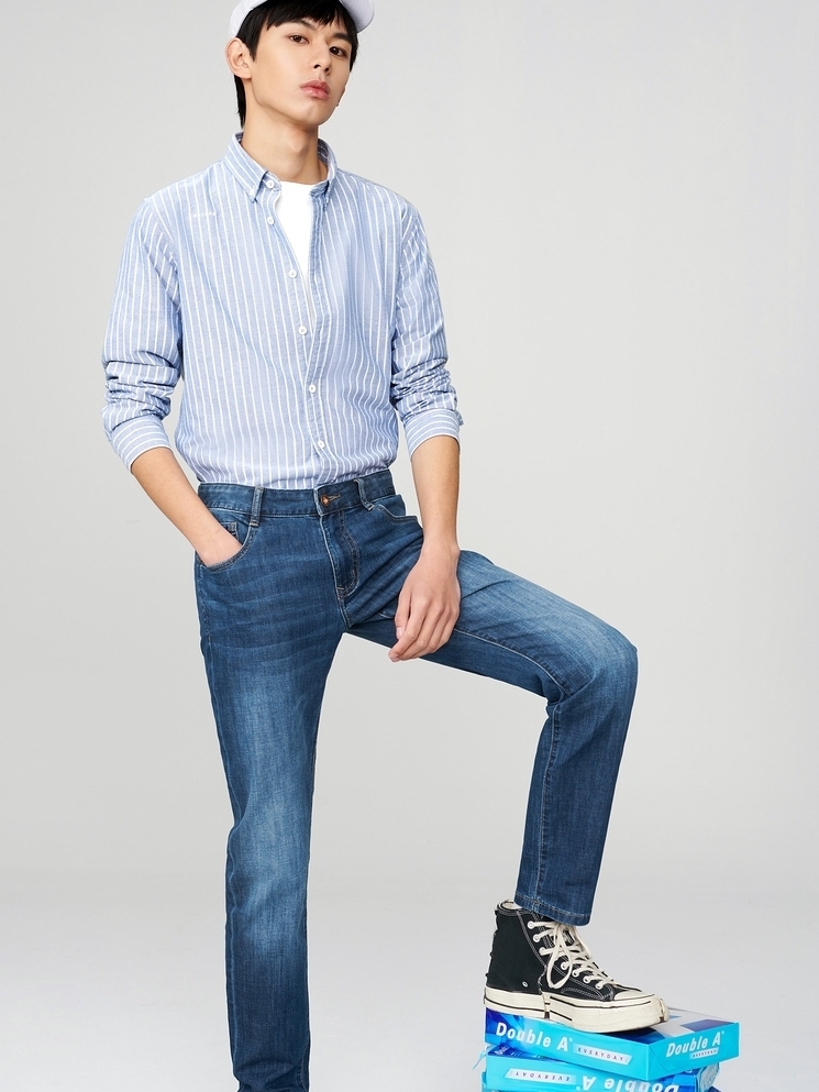 柔软舒适的牛仔面料,没有硬邦邦的感觉,而且富有弹性质感,无论胖瘦都能穿,加上纯色的颜色设计,带来休闲潮流气质。