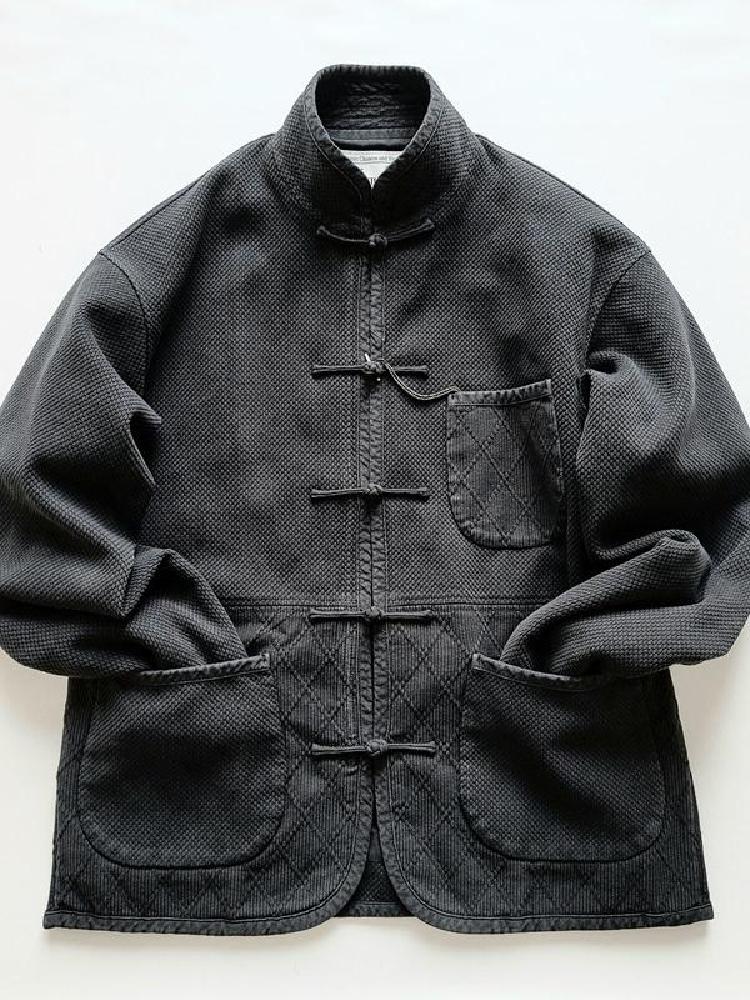 复古唐装外套,精选优质棉麻制作,垂感很好,穿着自然舒适,中式立领和挽袖的可拆卸设计,更具人性化。手工盘扣做工精致,一针一线都是品质的体现。