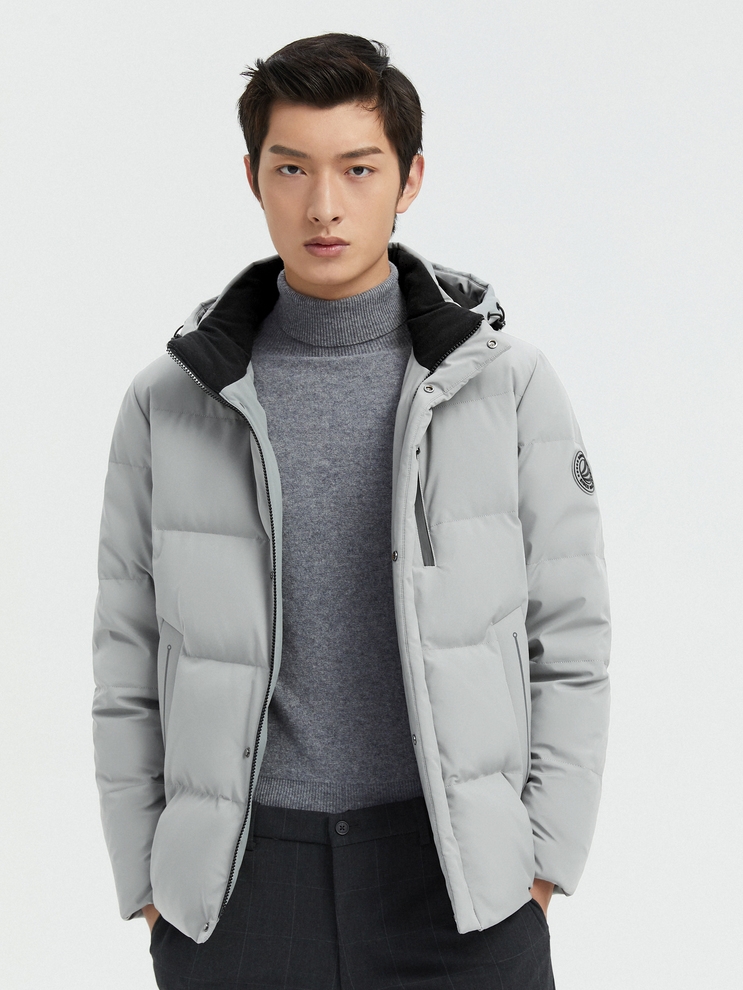 简约时尚的短款修身羽绒服外套,不仅容易搭配,更显利落与帅气哦。连帽的加入,时髦造型感,增添一丝青春活力的感觉,休闲帅气十足。低饱和度的灰色,带来舒适的视觉感受,时髦又百搭的。
