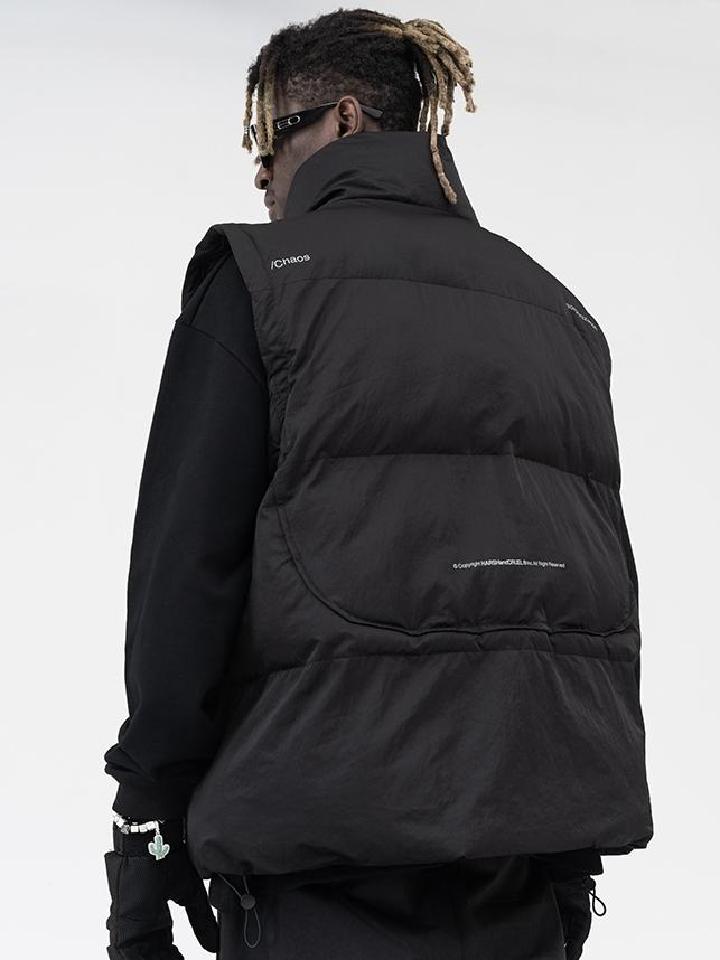 领口做了半高领设计防风效果好,可拆卸袖子作为最大的设计点,可更换款式形态,拆卸后可做棉服马甲搭配,满足多种着装需求。