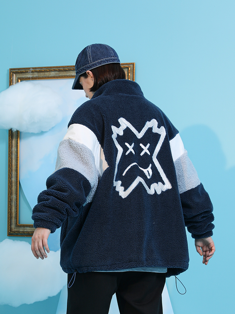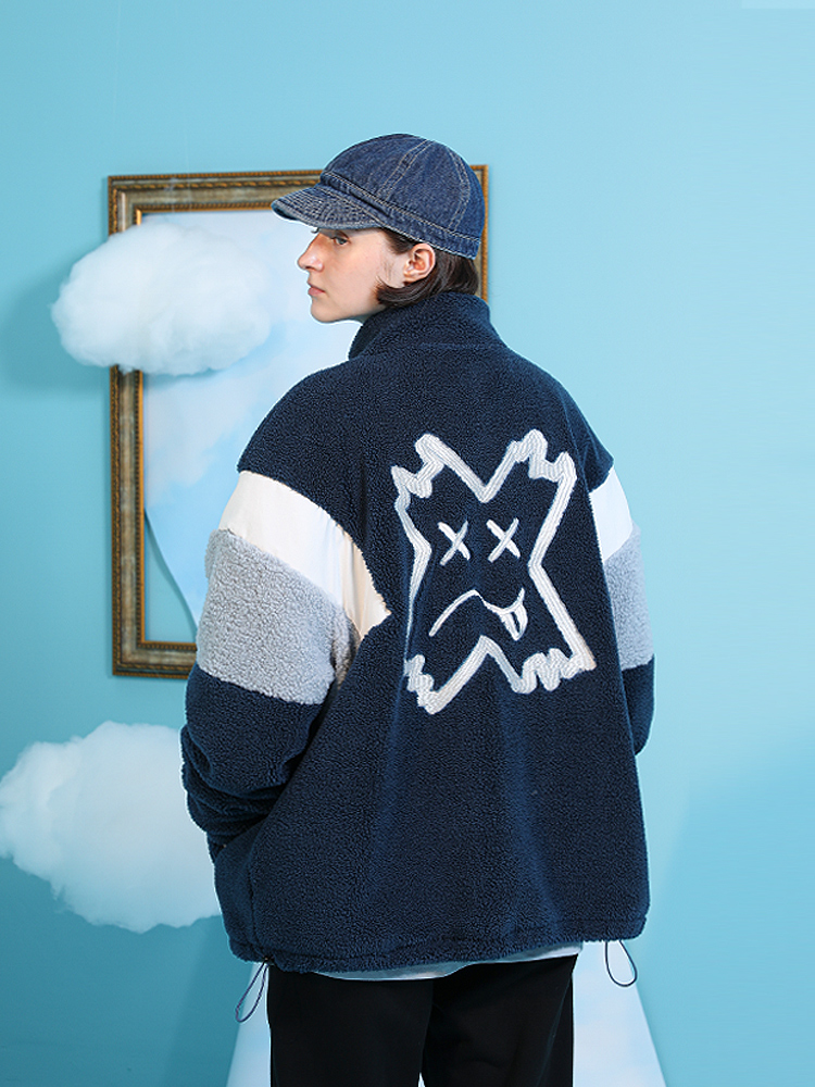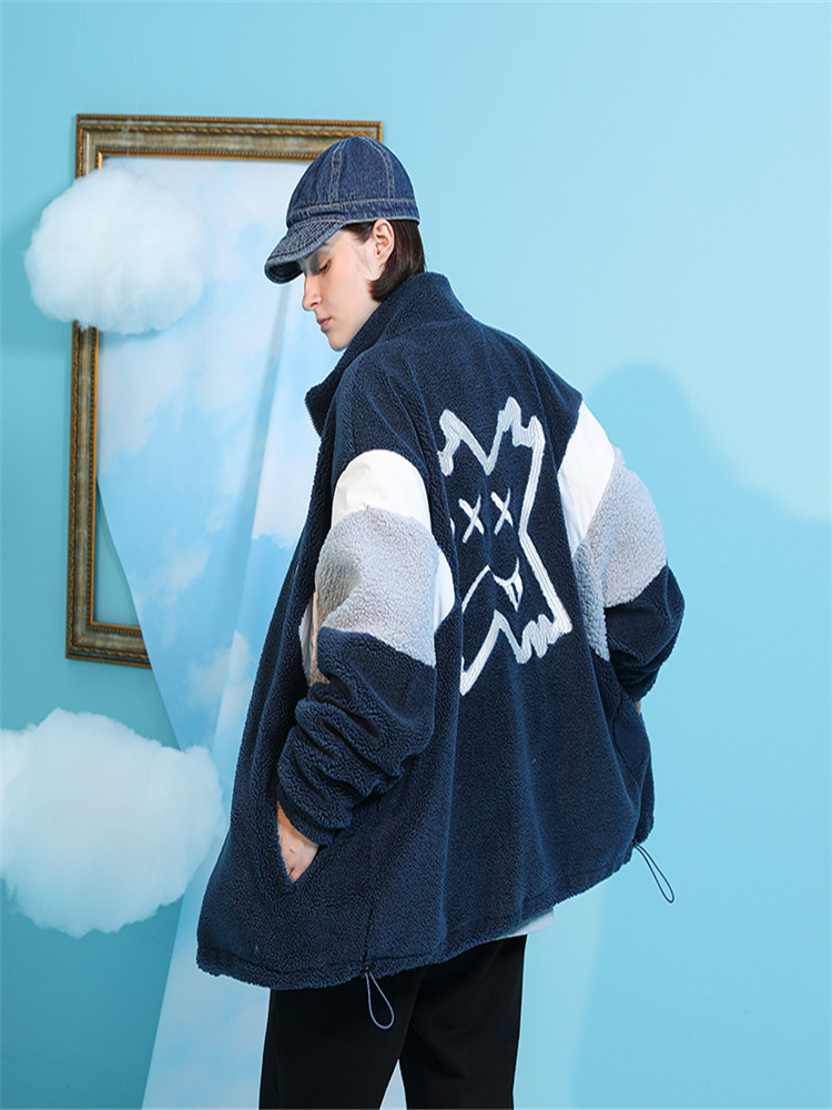 羊羔毛拼色的外套,穿着个性有时髦。落肩的设计,尽显慵懒的休闲风格,富有青春气息。