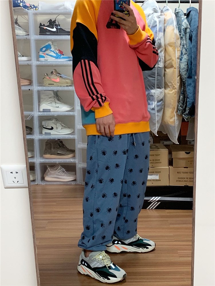 搭配运动裤,休闲感十足,长裤版型,修饰腿部线条,宽松卫裤,穿着舒适自在。