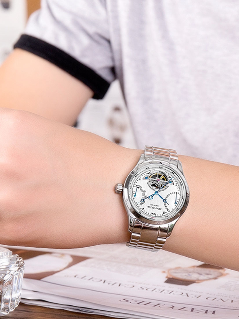 表壳经过电镀工艺处理,金属质感强烈,亮光效果突出,凸显男士最贵高雅的气质!