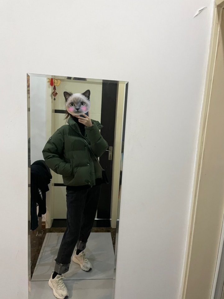 短款的羽绒服外套搭配宽松的卫衣更出效果,连帽的设计温暖的包裹着脖颈,挡风又美观,还能让脸型显得更加瘦美。下身搭配一条蓝色的牛仔裤,与上身的慵懒感相呼应相融合,给人和谐统一的感觉。