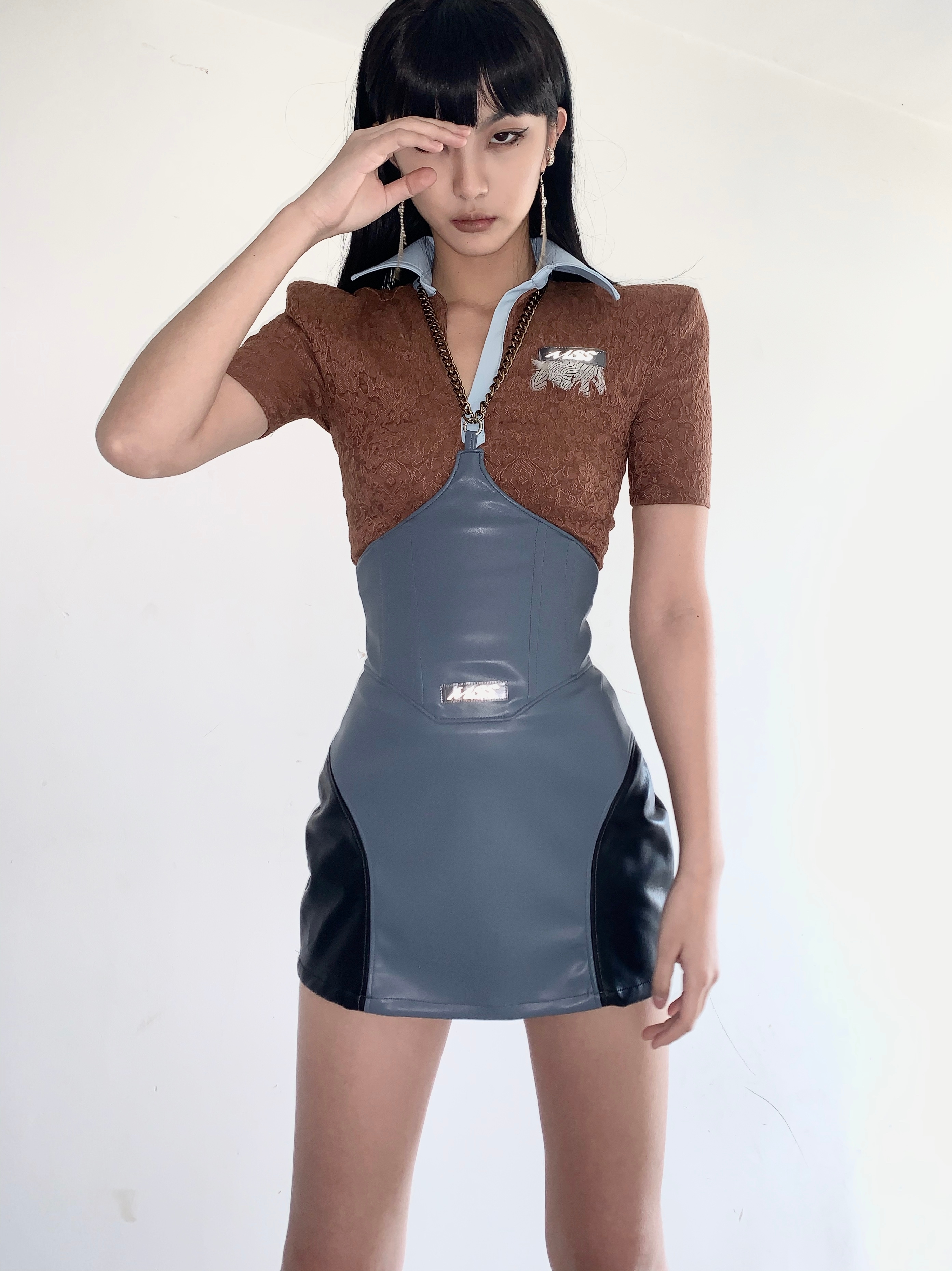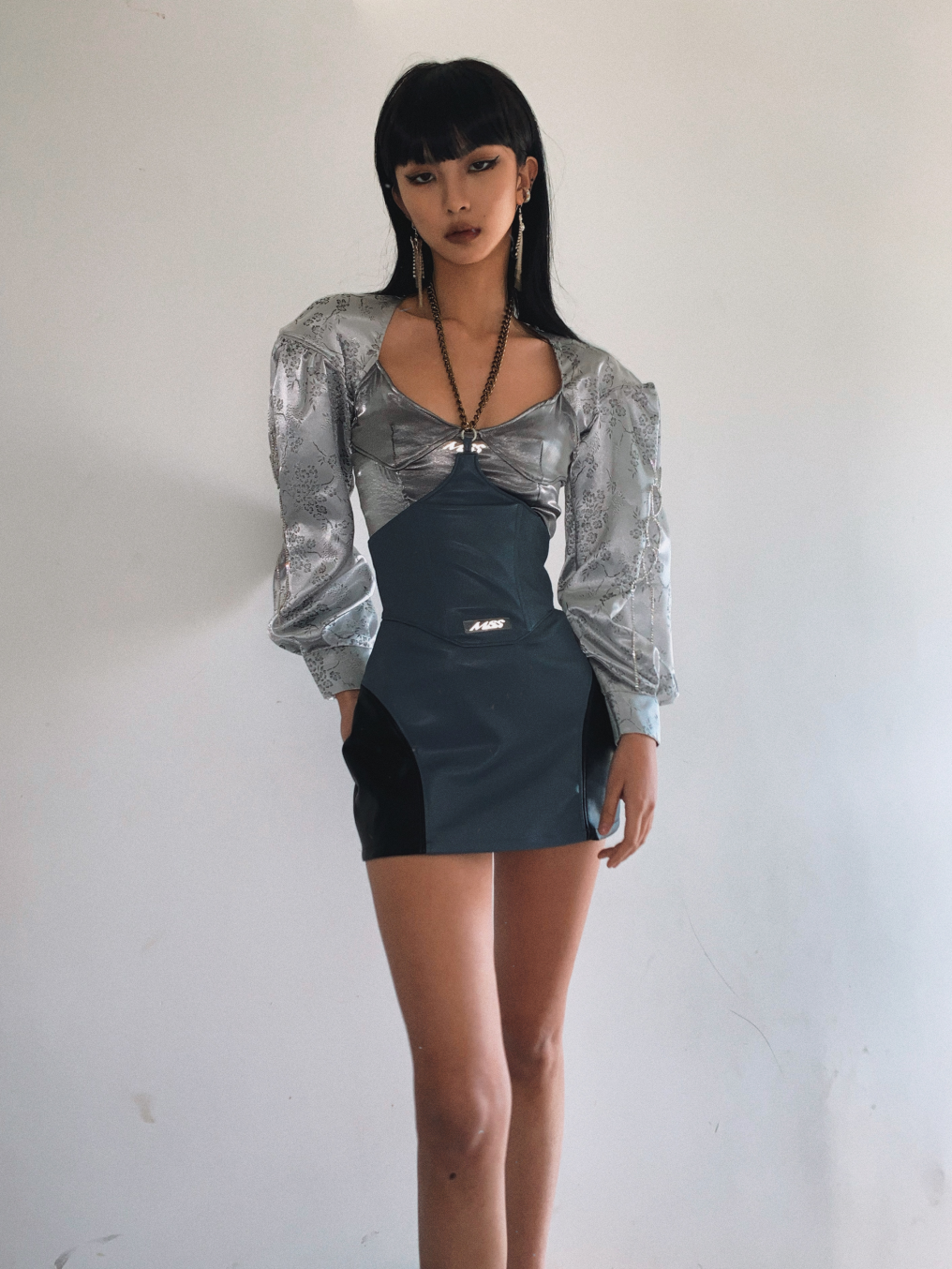 简约的高腰设计,搭配上修身的版型,上身显瘦又显高。