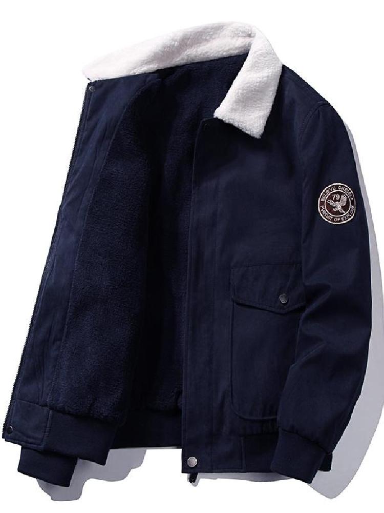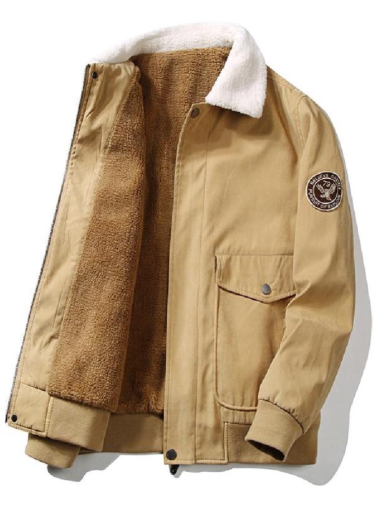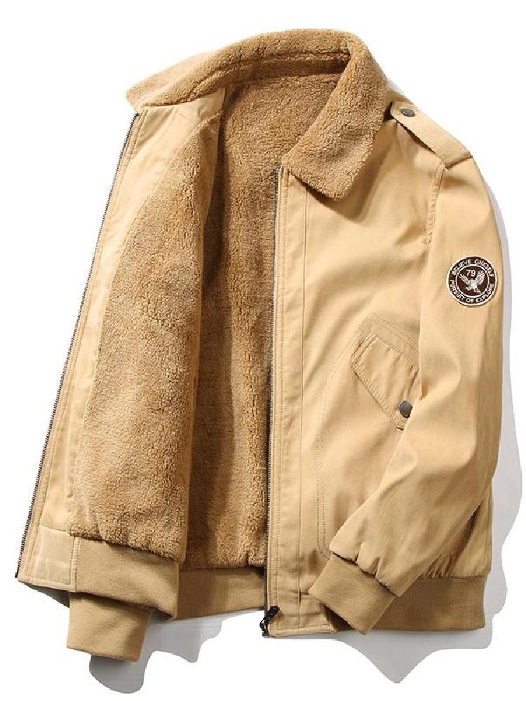 长袖夹克外套,仿羊羔绒材质,触感柔软,西装翻领,短款宽松版型,前口袋,搭扣开合,全衬里,保暖时尚!