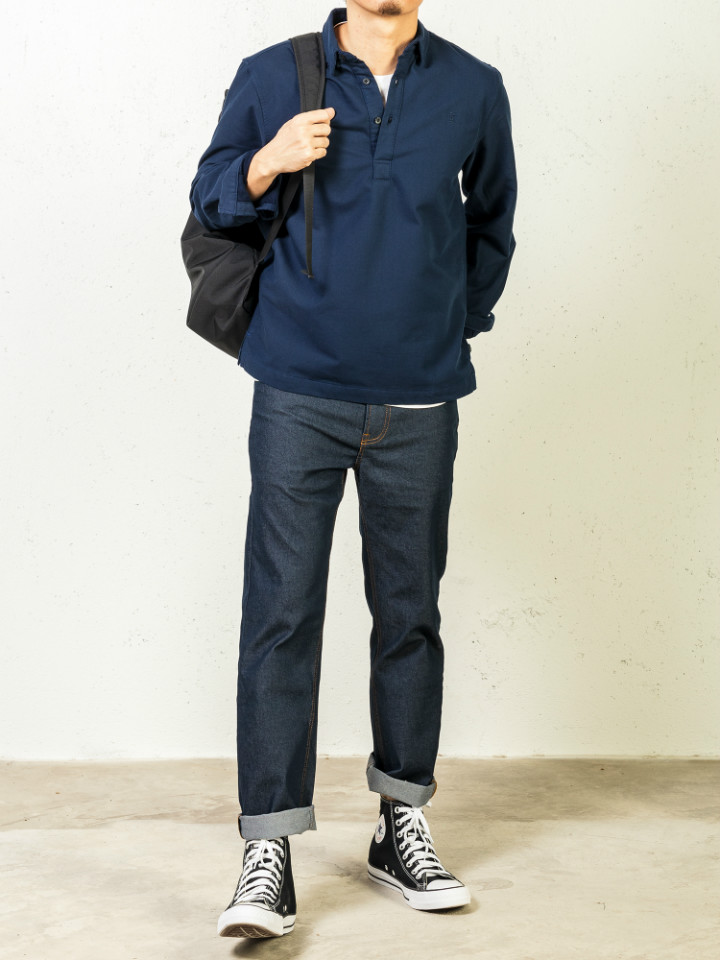 深蓝色牛仔配色的设计,百搭之余还很随性街头。
