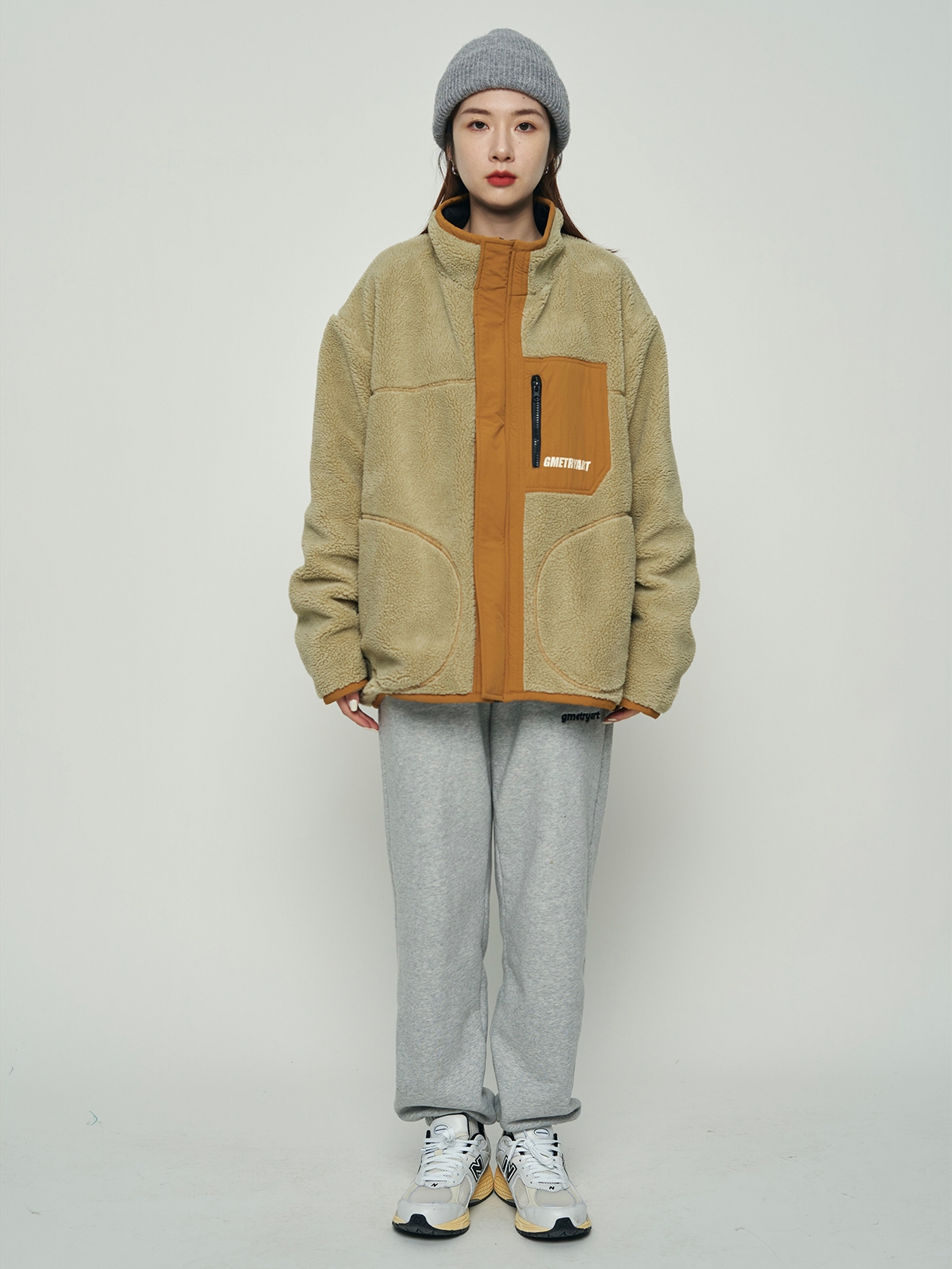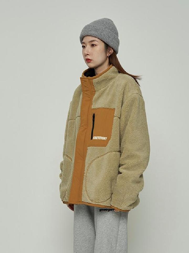 羊毛羔加绒的夹克,穿着保暖的同时更显利索,结合衣身上的拼色口袋设计,呼应整体版型,让穿着更有型。